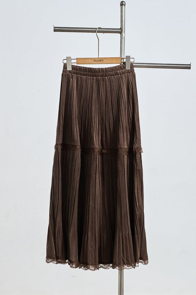 Chân váy nhung dáng xoè cạp chun phối ren - N62L25Q023