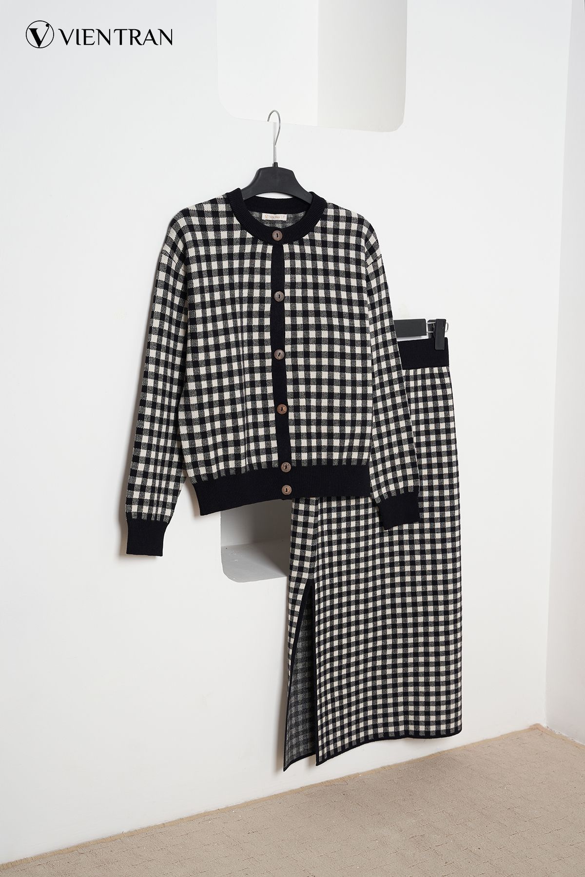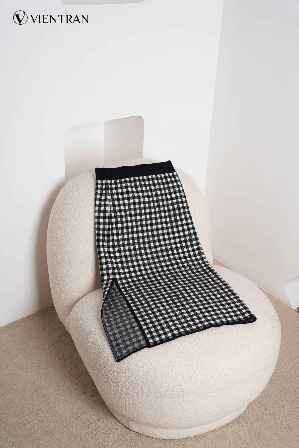 Chân váy len ôm xẻ sườn kẻ ô GBT002 - V62F21T001