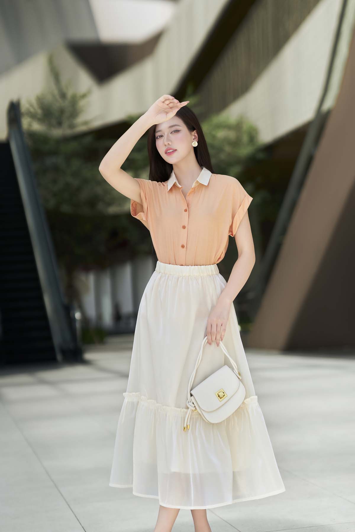 Chân váy tơ xòe nhún kẹp bèo : D62L25Q001