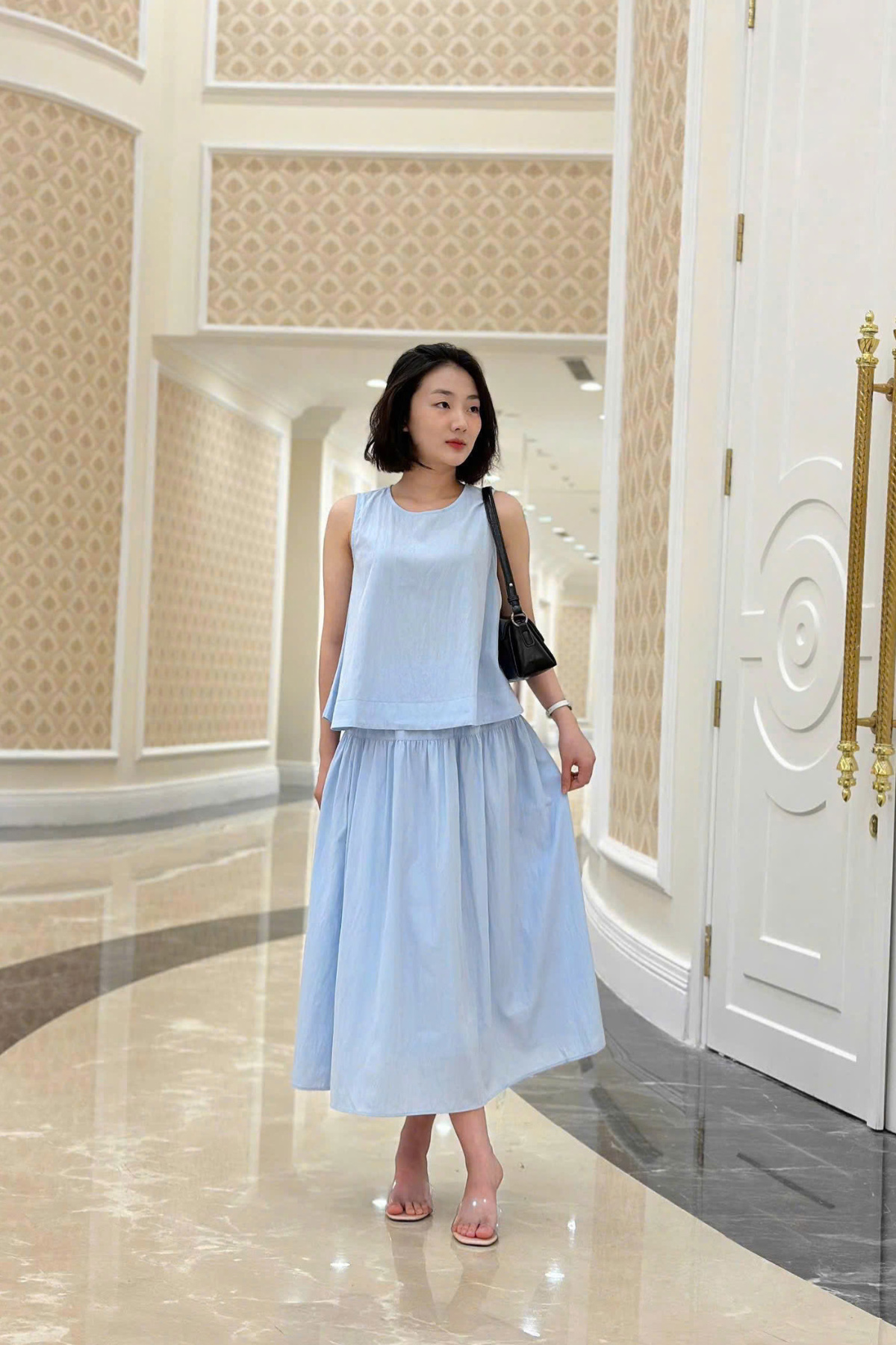 Chân váy xòe chun eo nhún tầng - V62L25H013 KHUYẾN MÃI - ƯU ĐÃI