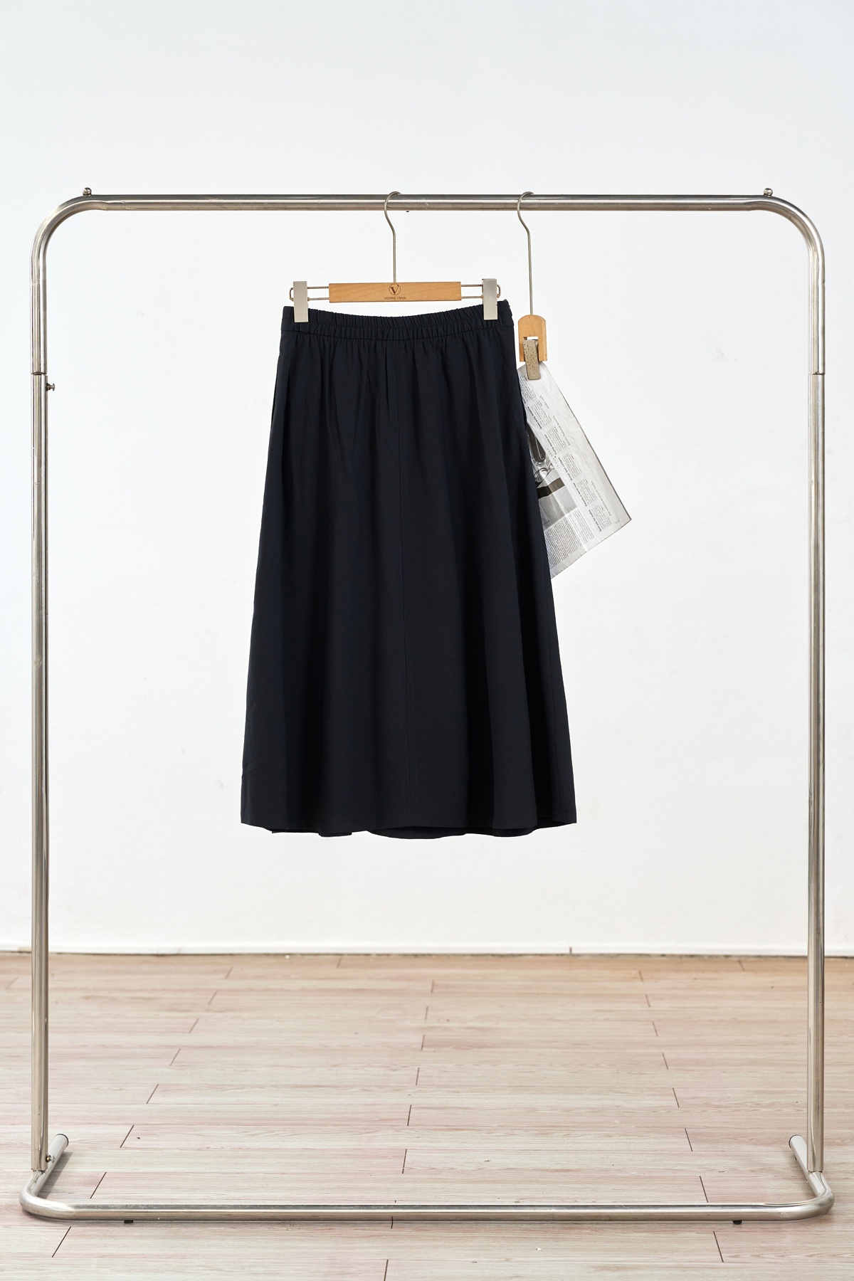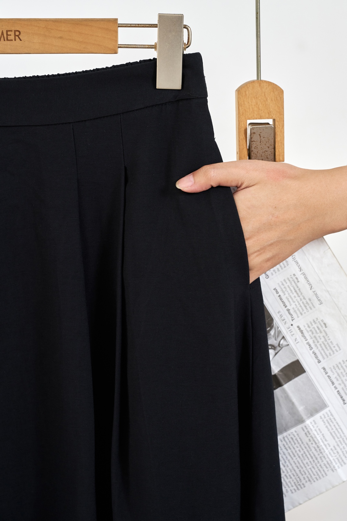 Mô tả sản phẩm : Chân váy dáng xòe, chun sau, xếp ly, túi dọc sườn. GB L65D25Q018