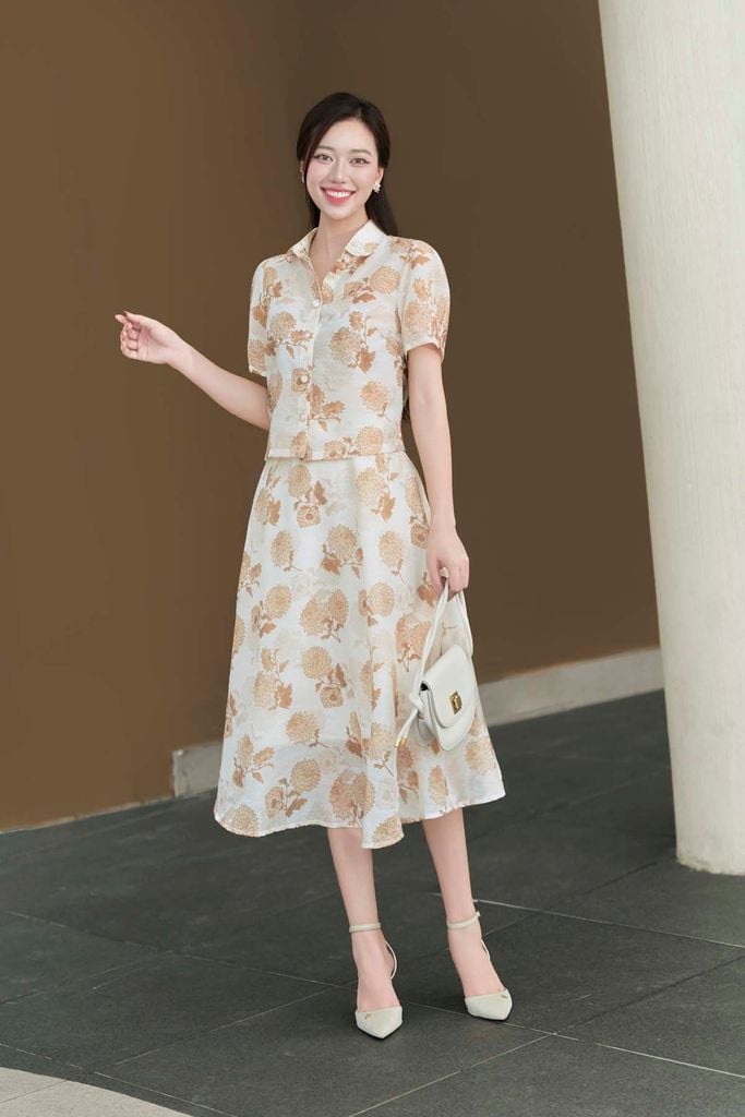 Mô tả sản phẩm : Chân váy dáng xòe kéo khóa sau. GB O61H25H017