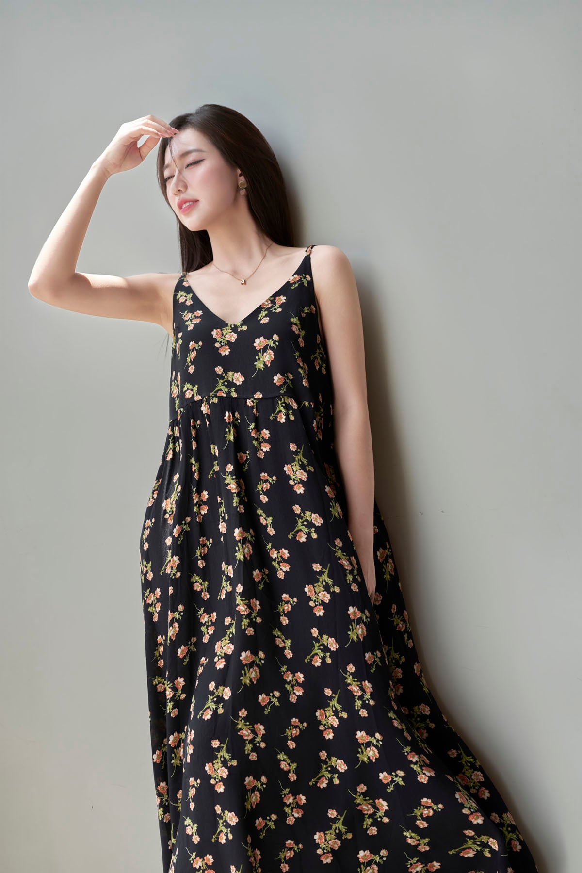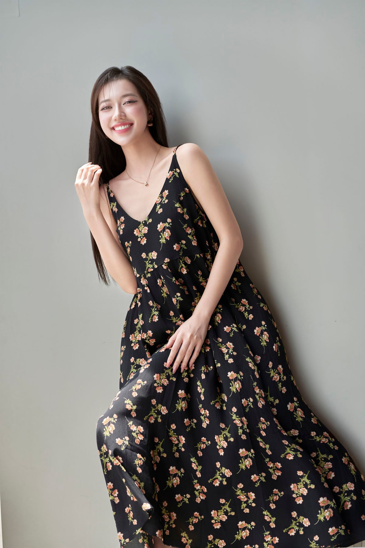 Mô tả sản phẩm : Đầm xòe dáng dài, đầm 2 dây, nhún eo.
