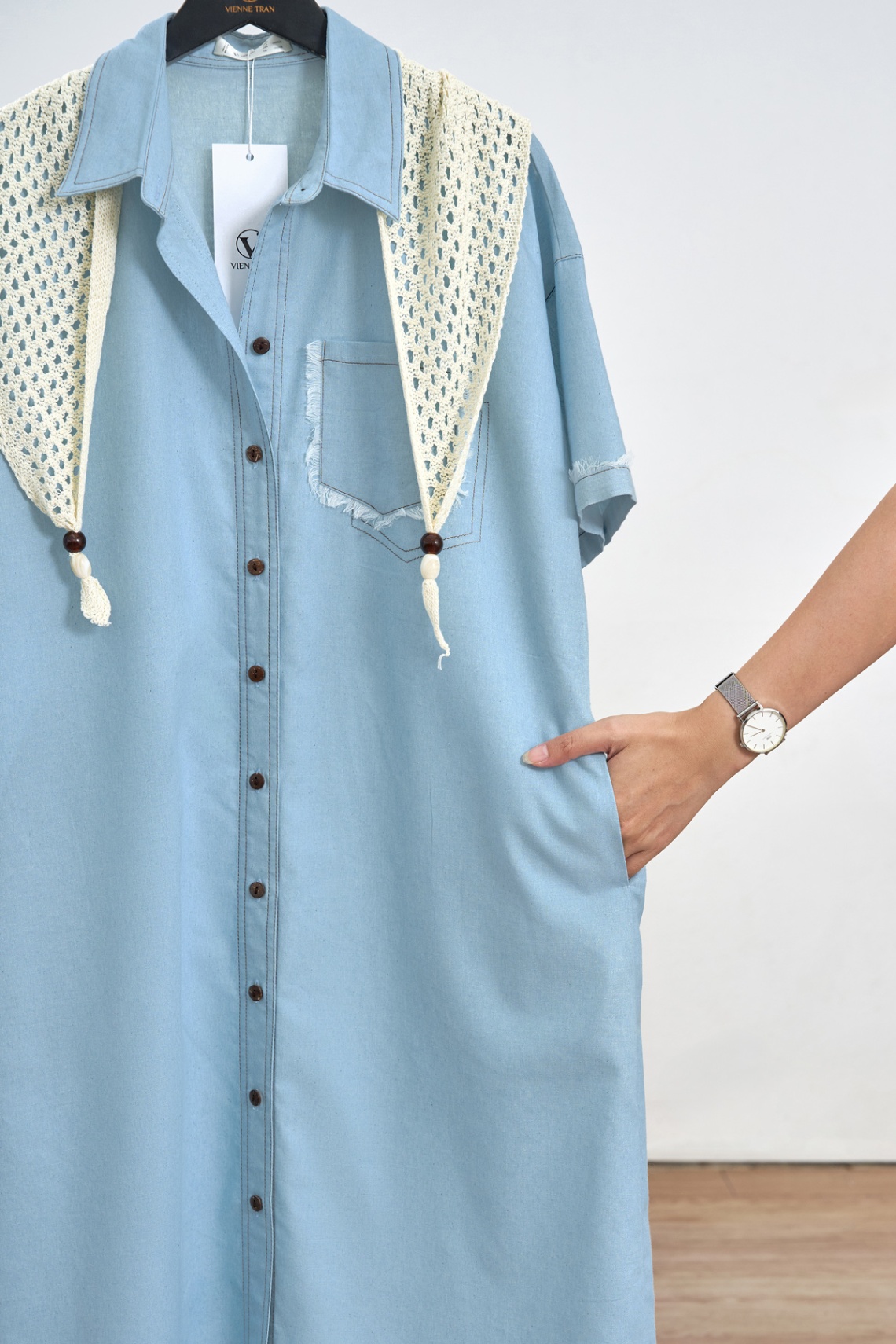 Đầm bò dài túi ốp diễu chỉ - V63T25H033 KHUYẾN MÃI - ƯU ĐÃI