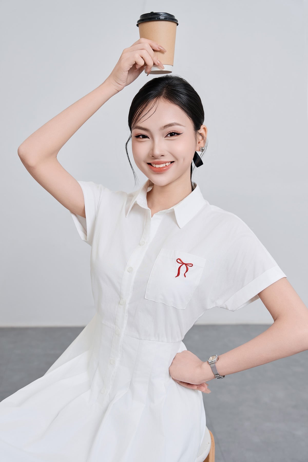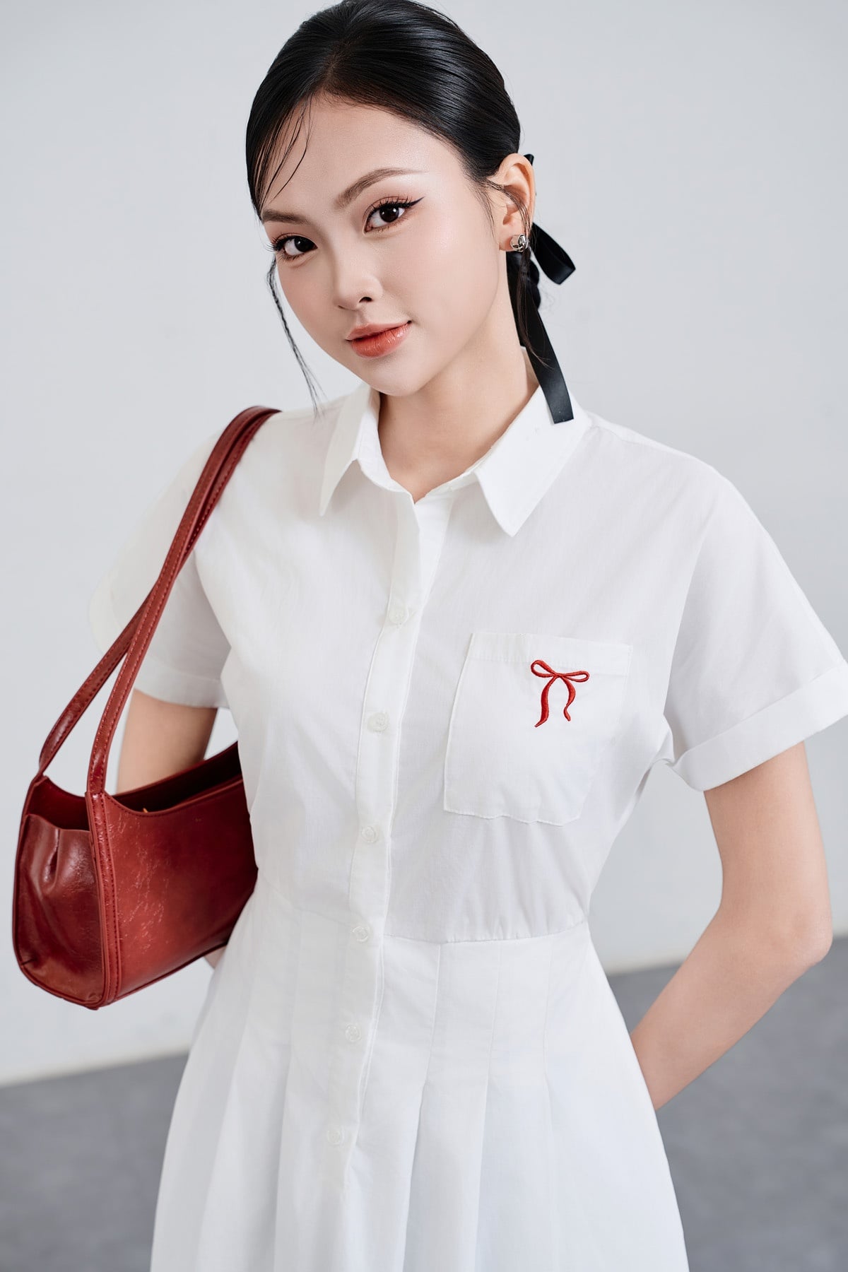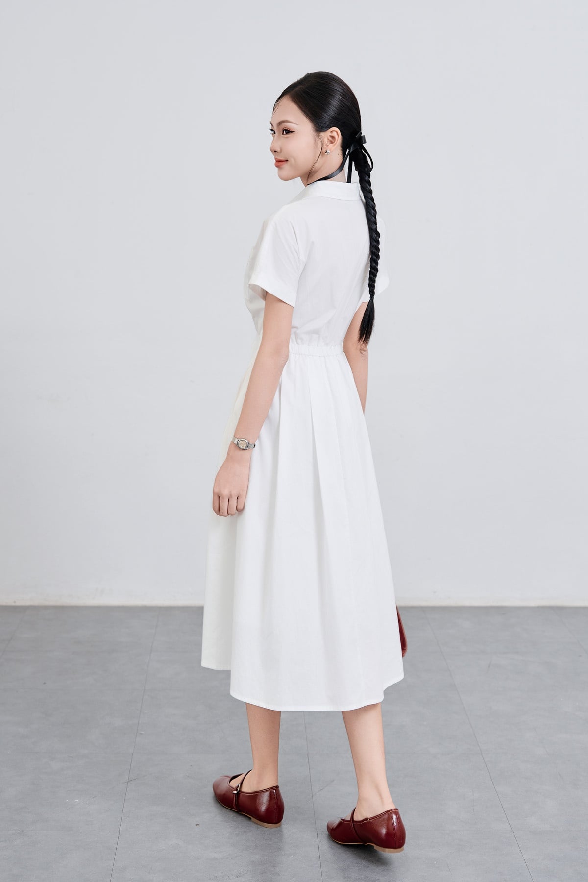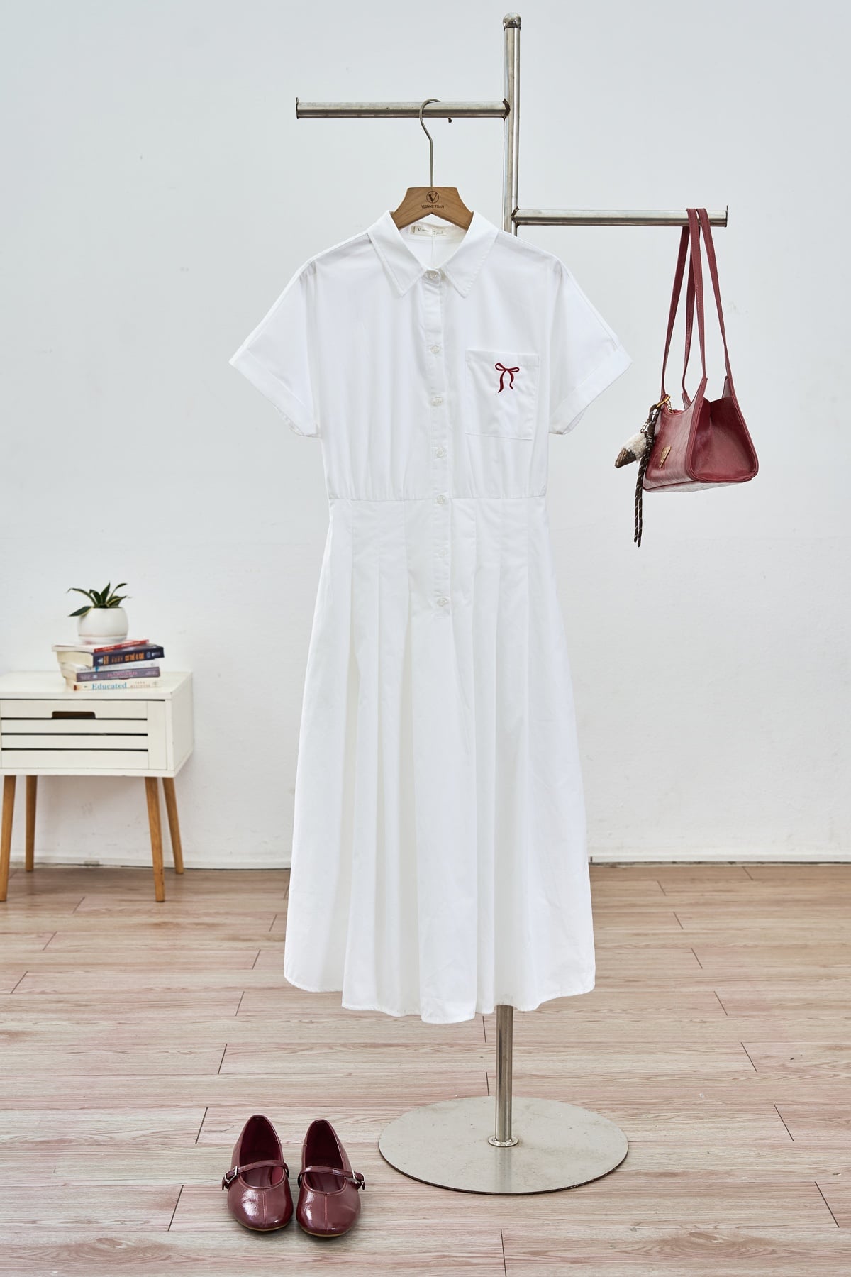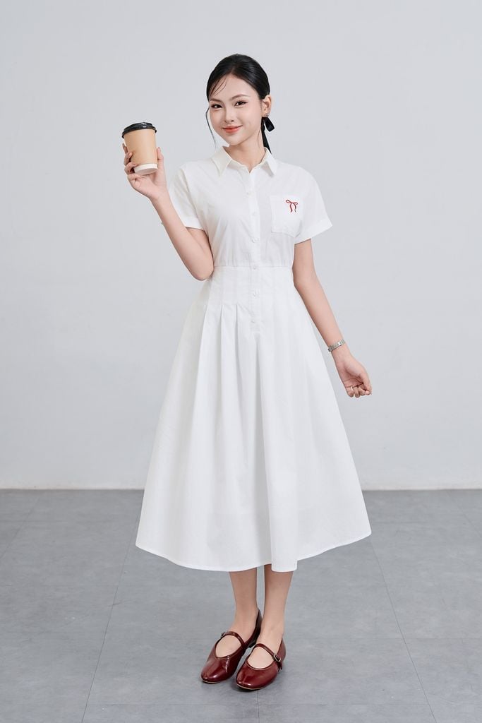 Đầm cổ đức chun eo, thêu nơ : V63L25H014