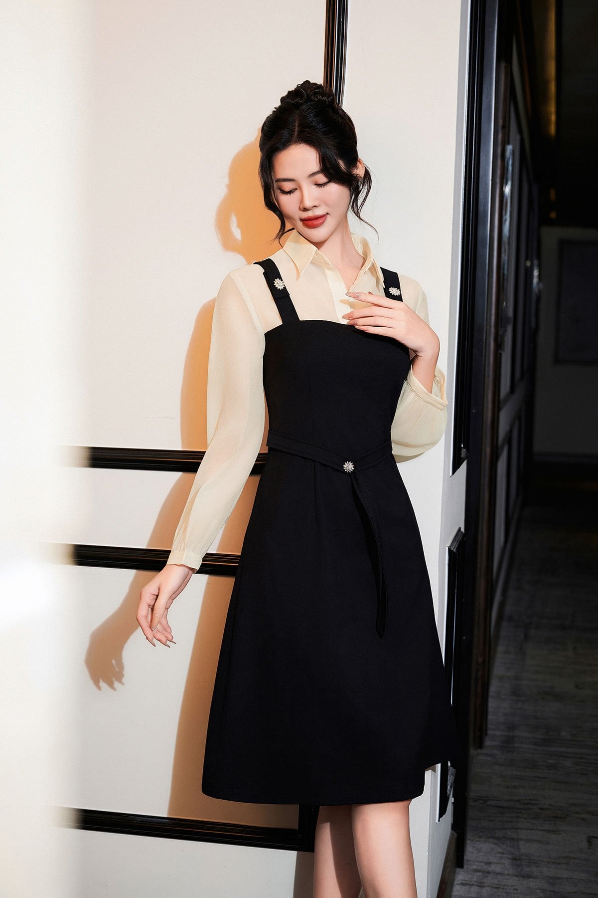 Đầm dáng A phối voan đai viền - S63R23Q065 KHUYẾN MÃI - ƯU ĐÃI