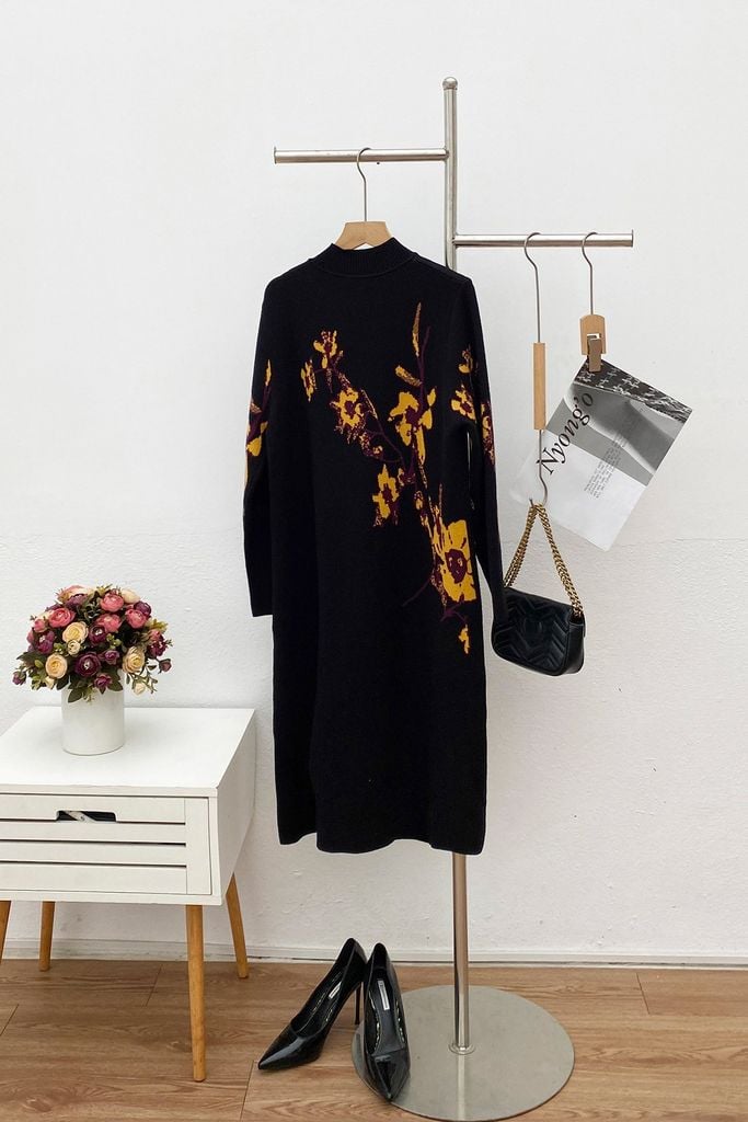 Đầm len suông dệt hoa - L63T23T014 KHUYẾN MÃI - ƯU ĐÃI