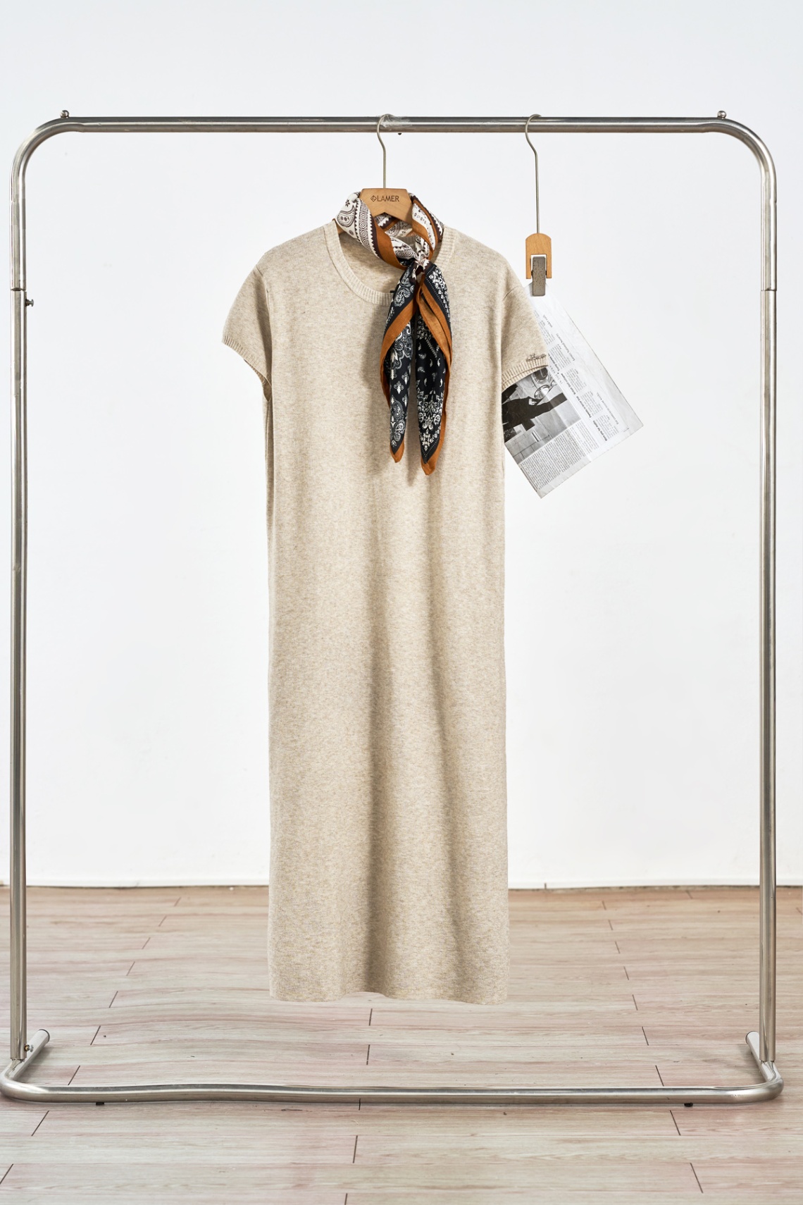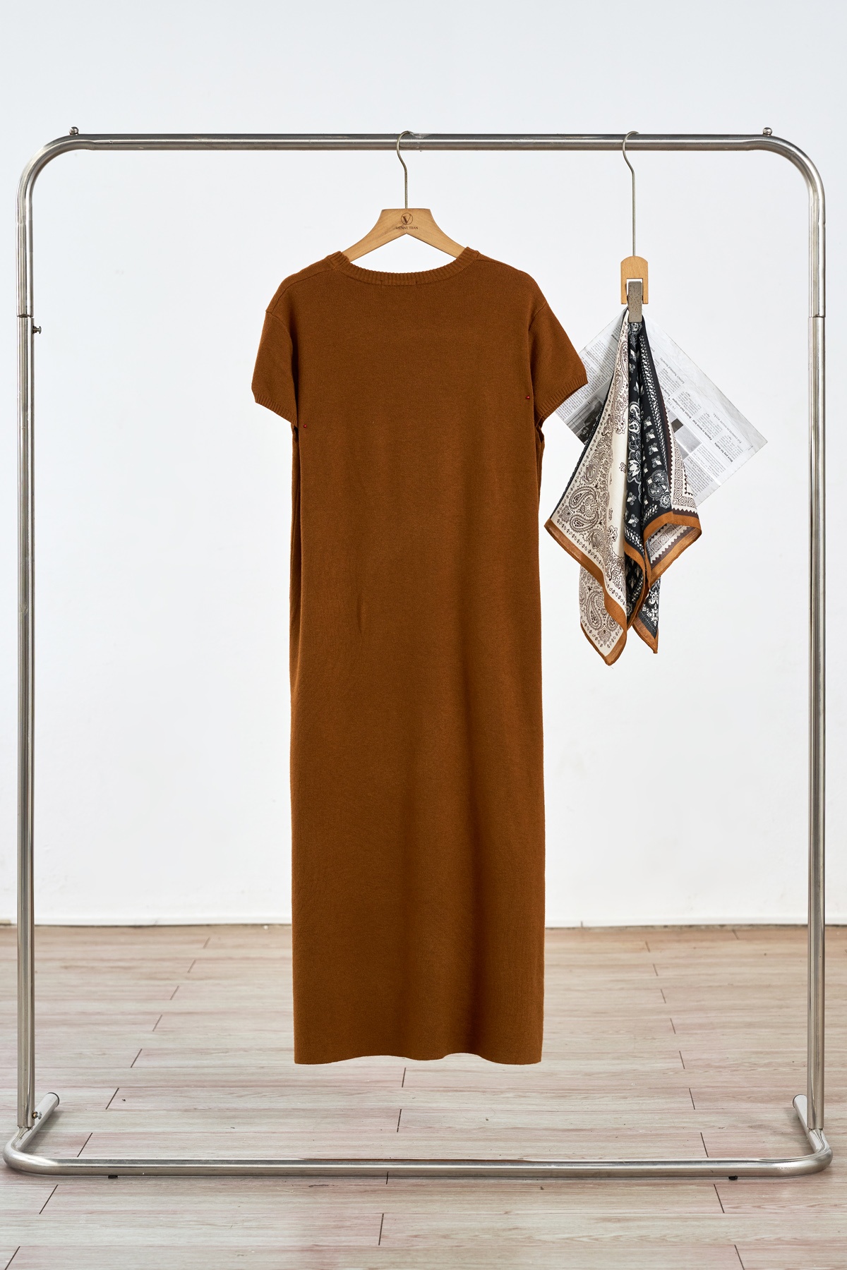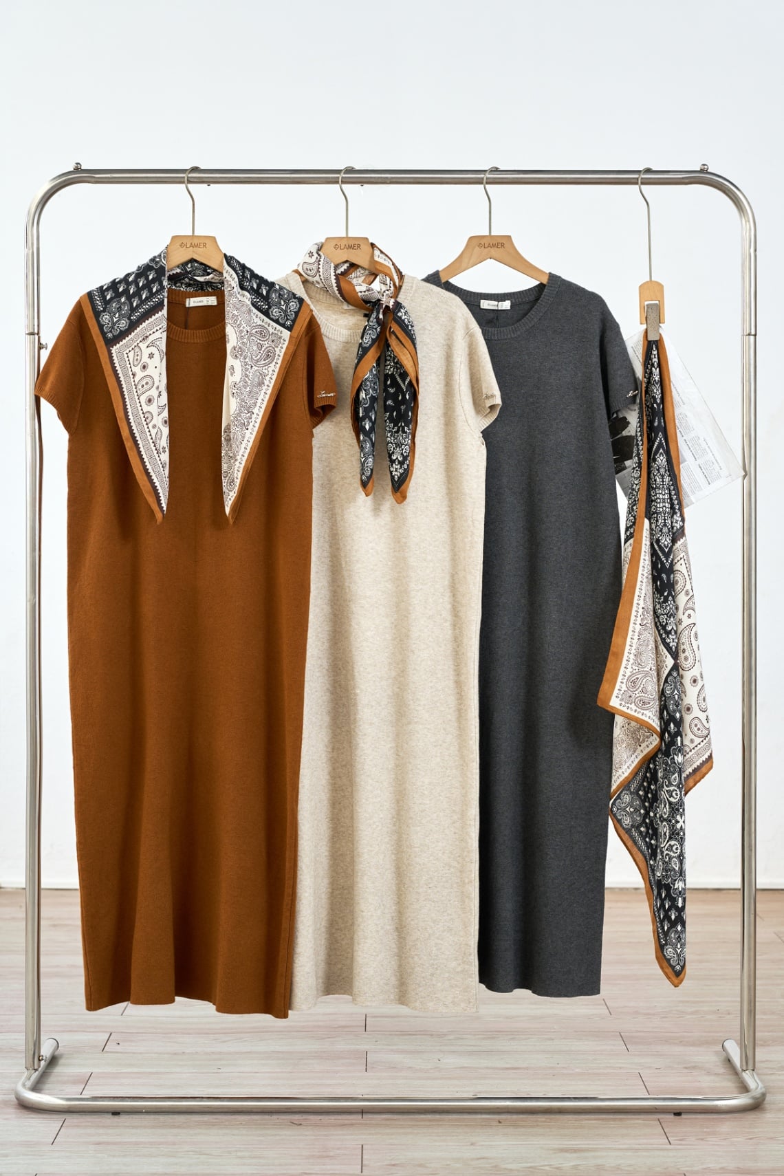 Đầm len suông midi kèm khăn hoạ tiết-Lamer : L66C25Q001