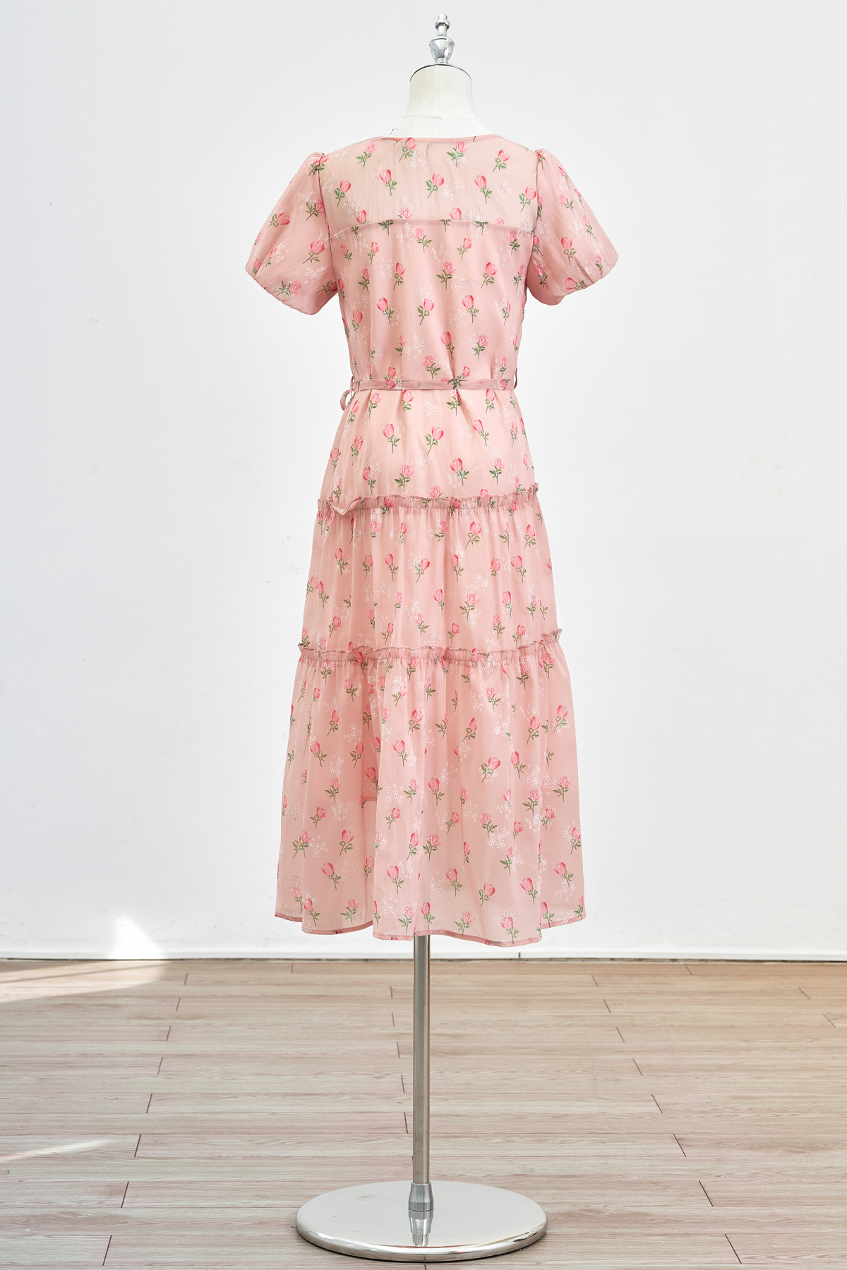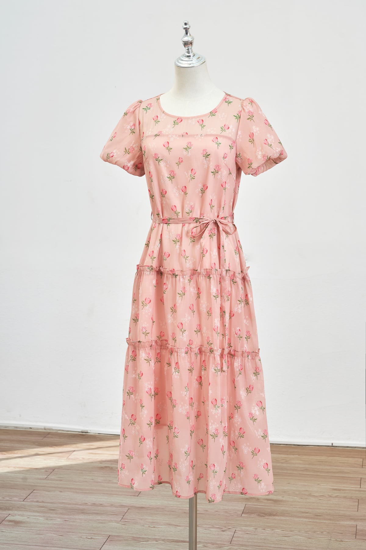 Mô tả sản phẩm : Đầm dáng suông dài, tay bom, 2 lớp, nơ buộc eo, nhún 3 tầng kẹp bèo.
