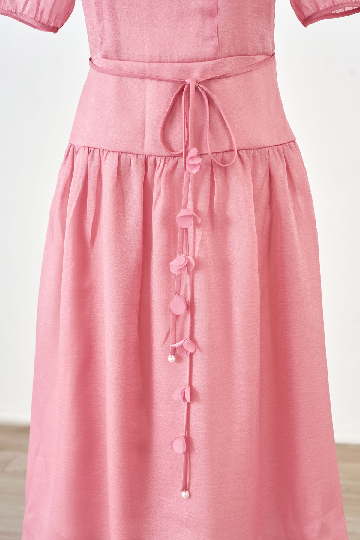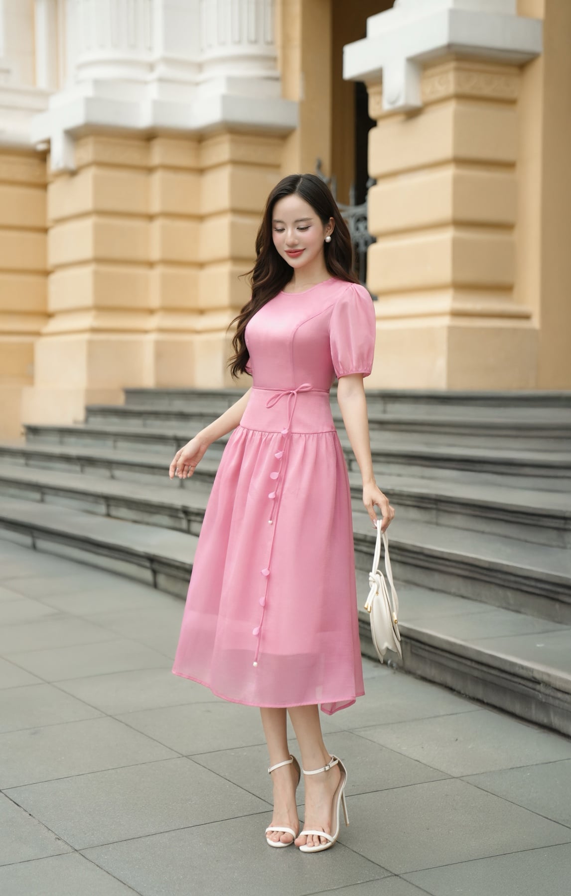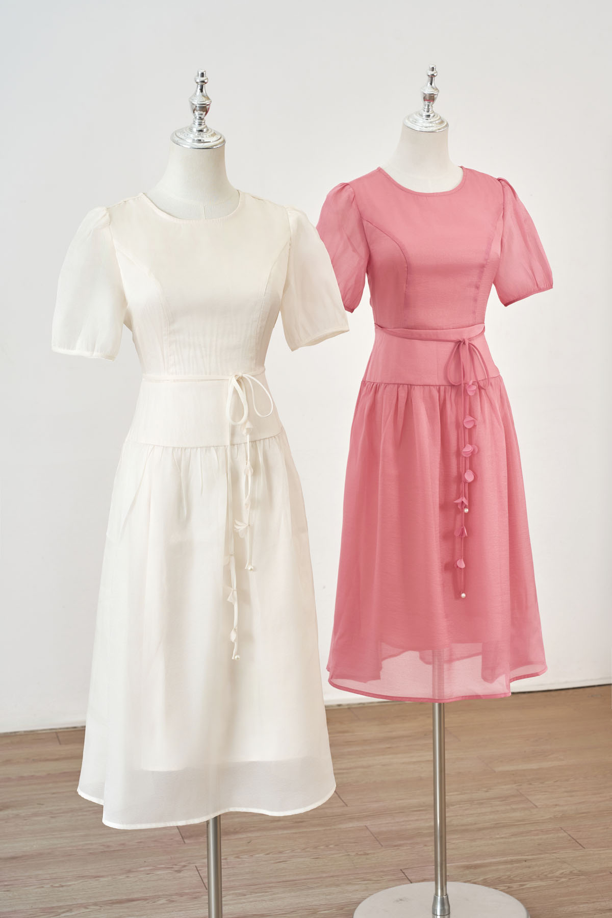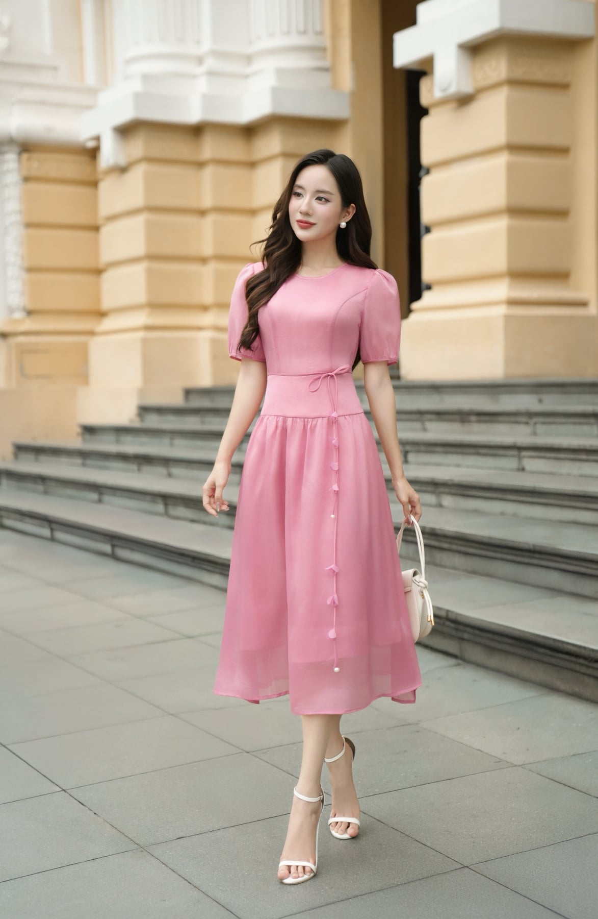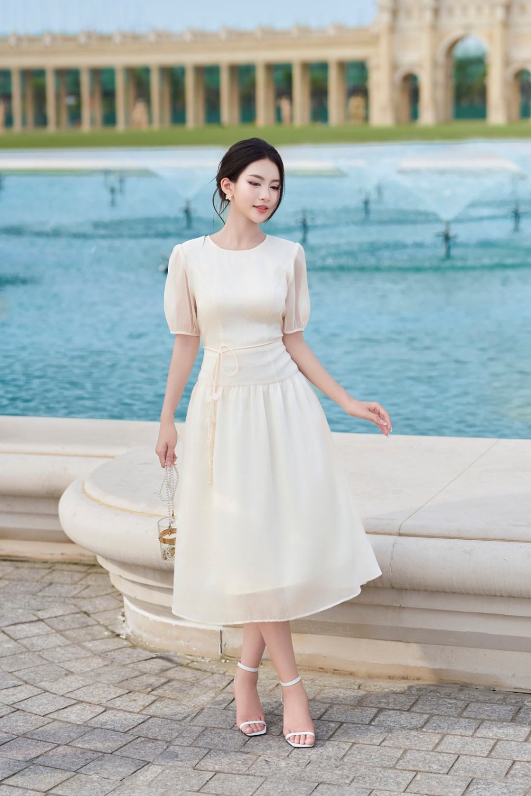 Đầm nhún xòe buộc nơ eo : L63L25H054