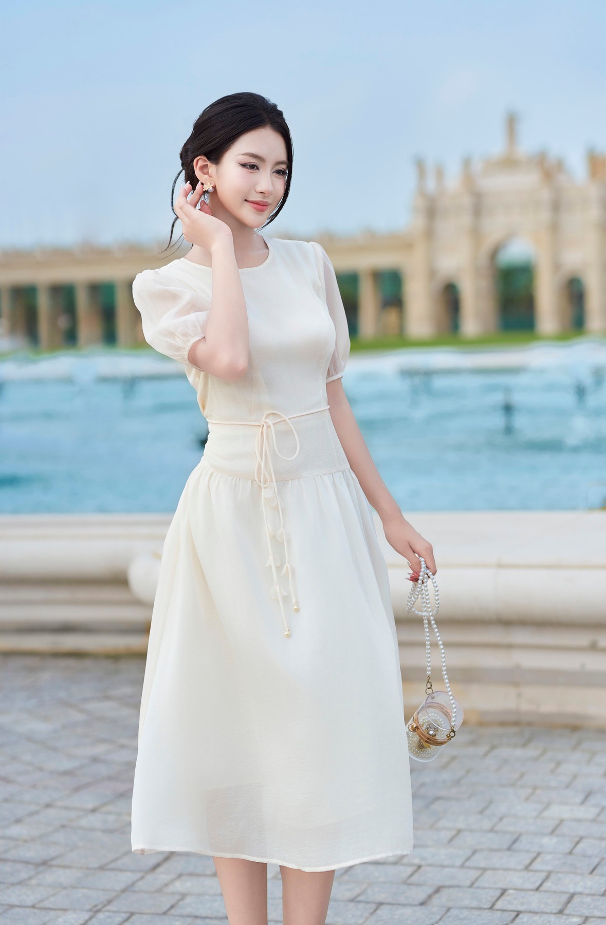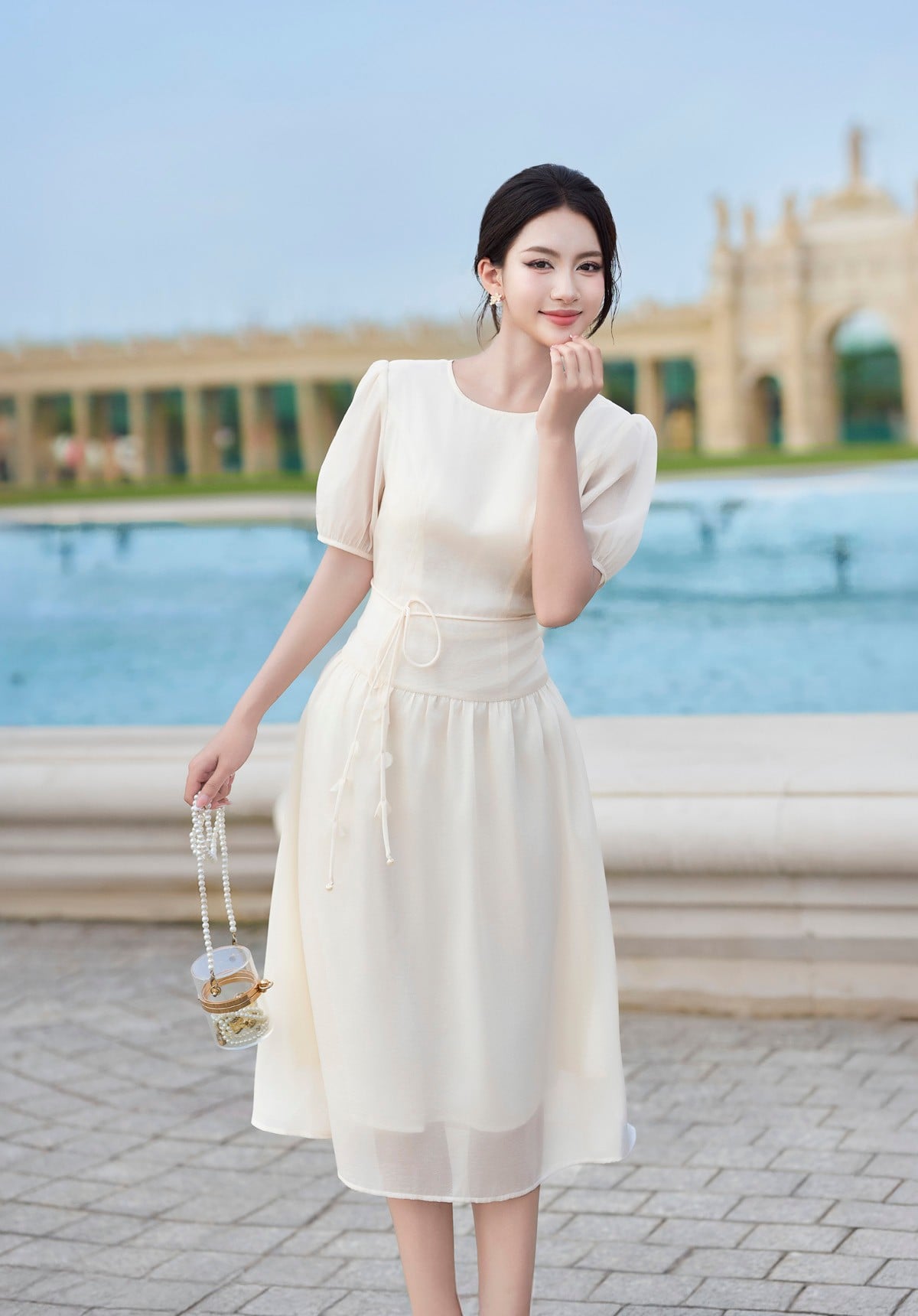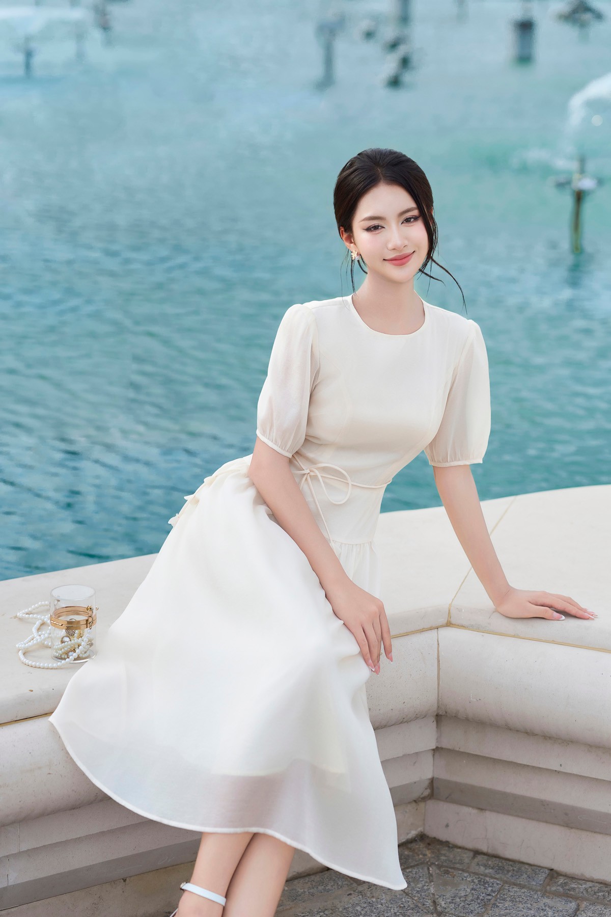 Đầm nhún xòe buộc nơ eo - L63L25H054