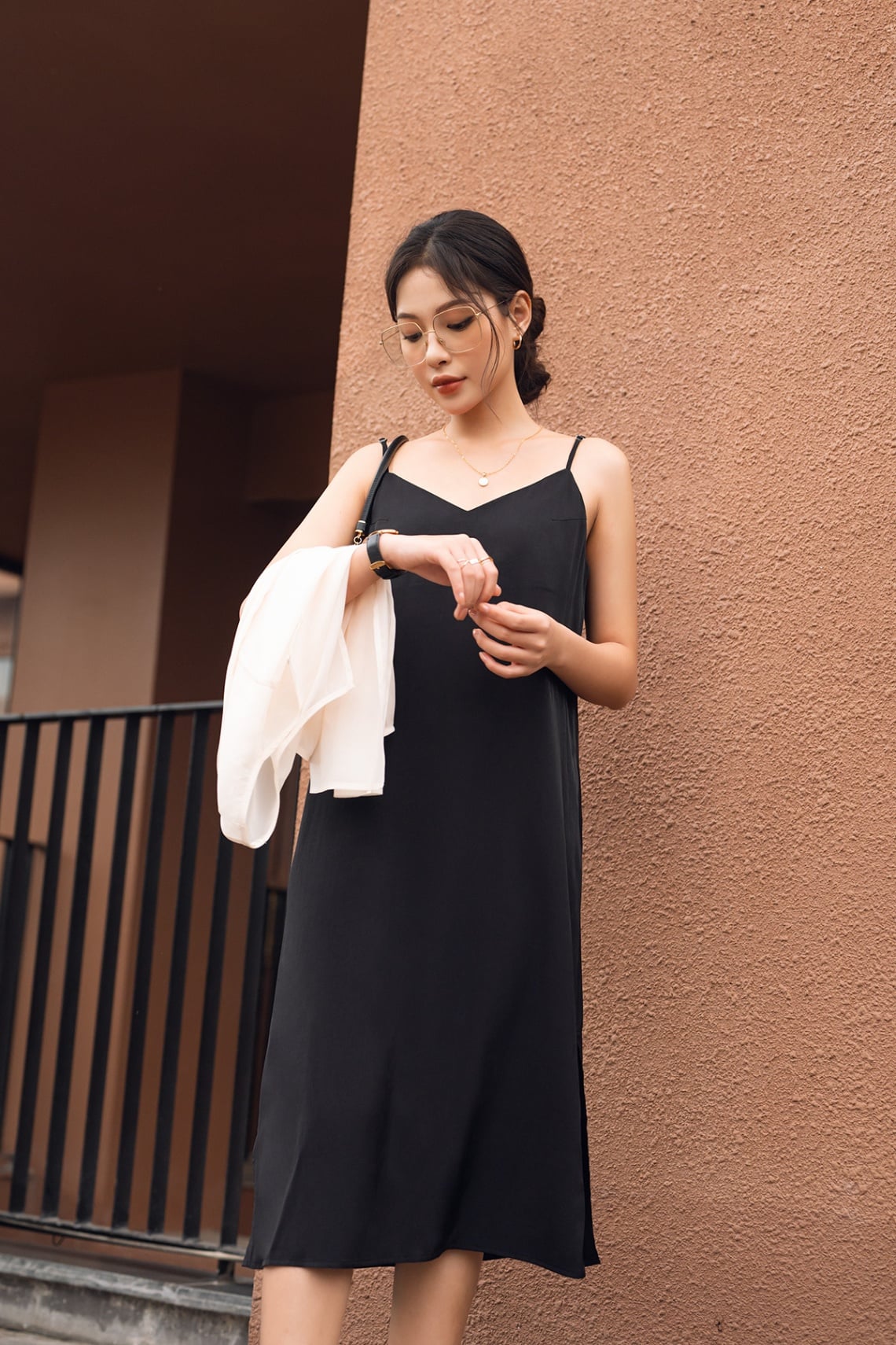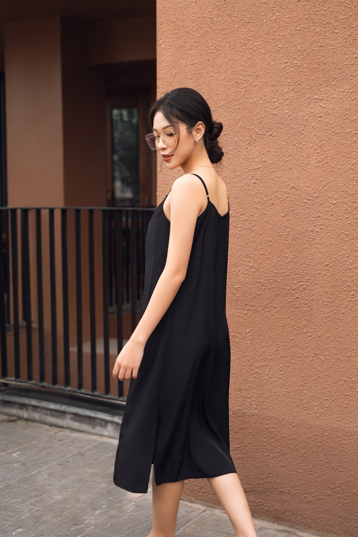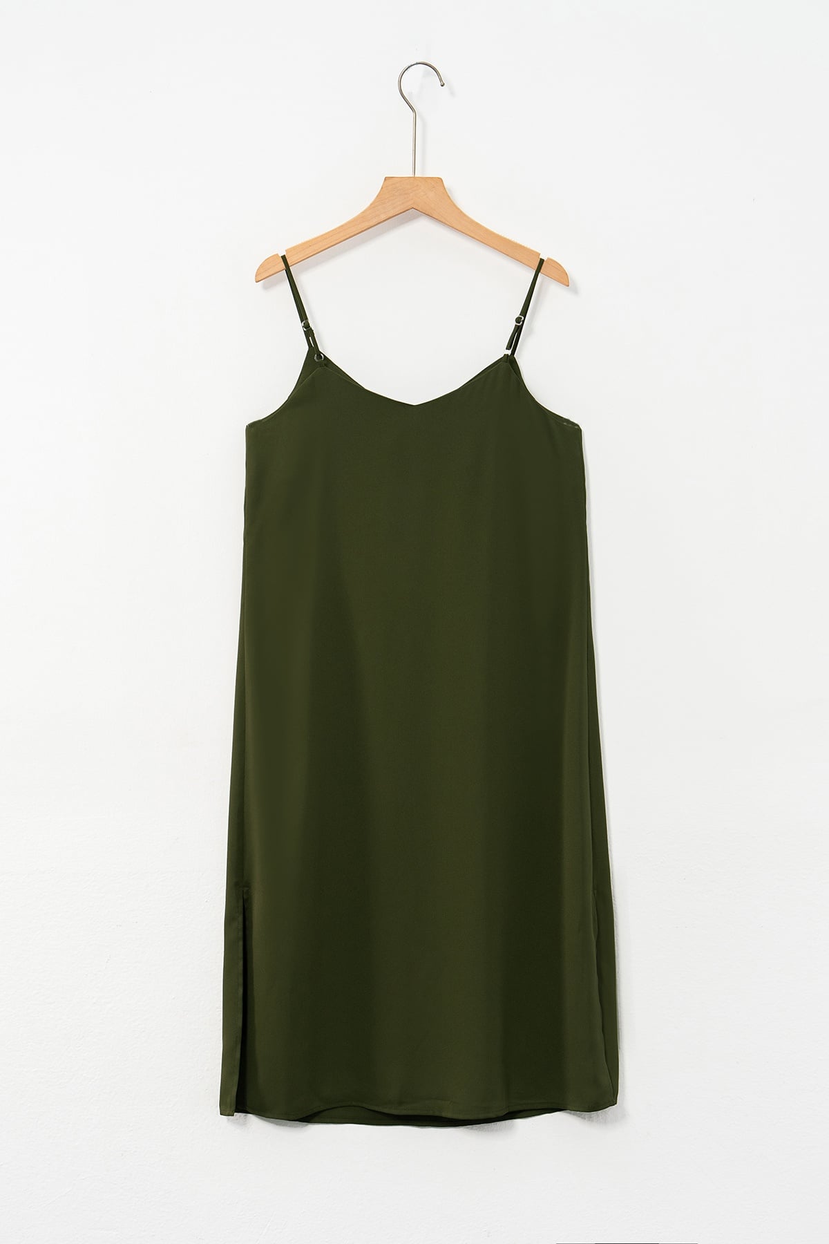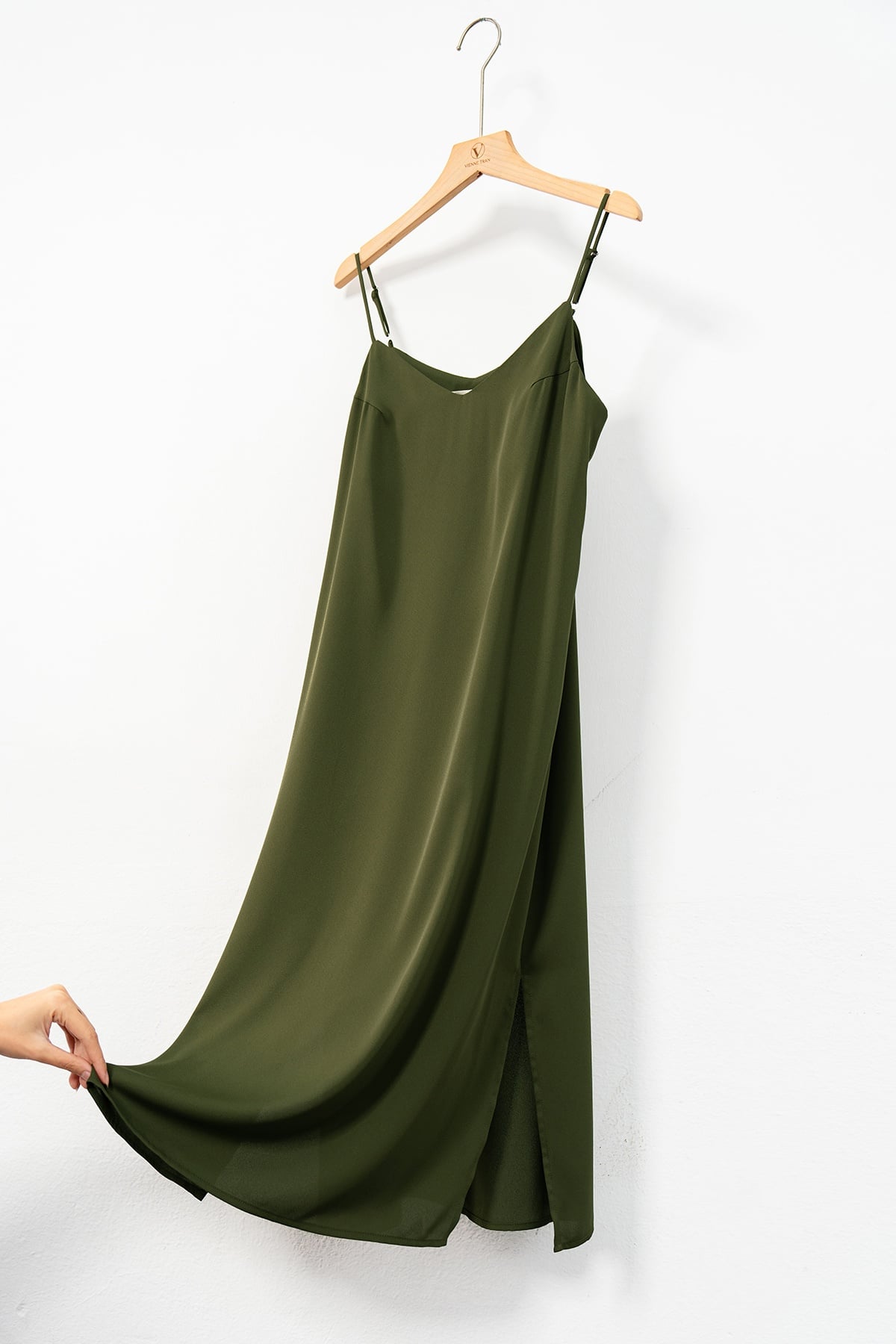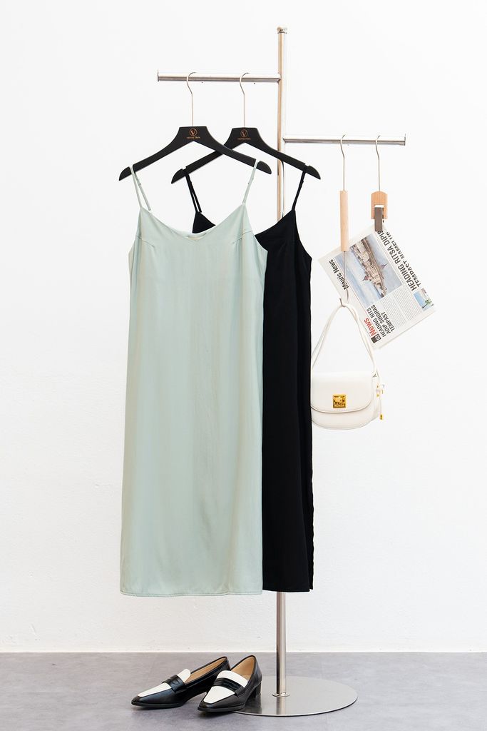 Mô tả sản phẩm : Đầm suông 2 dây, cổ tim, gấu xẻ, dây có chốt điều chỉnh dài ngắn