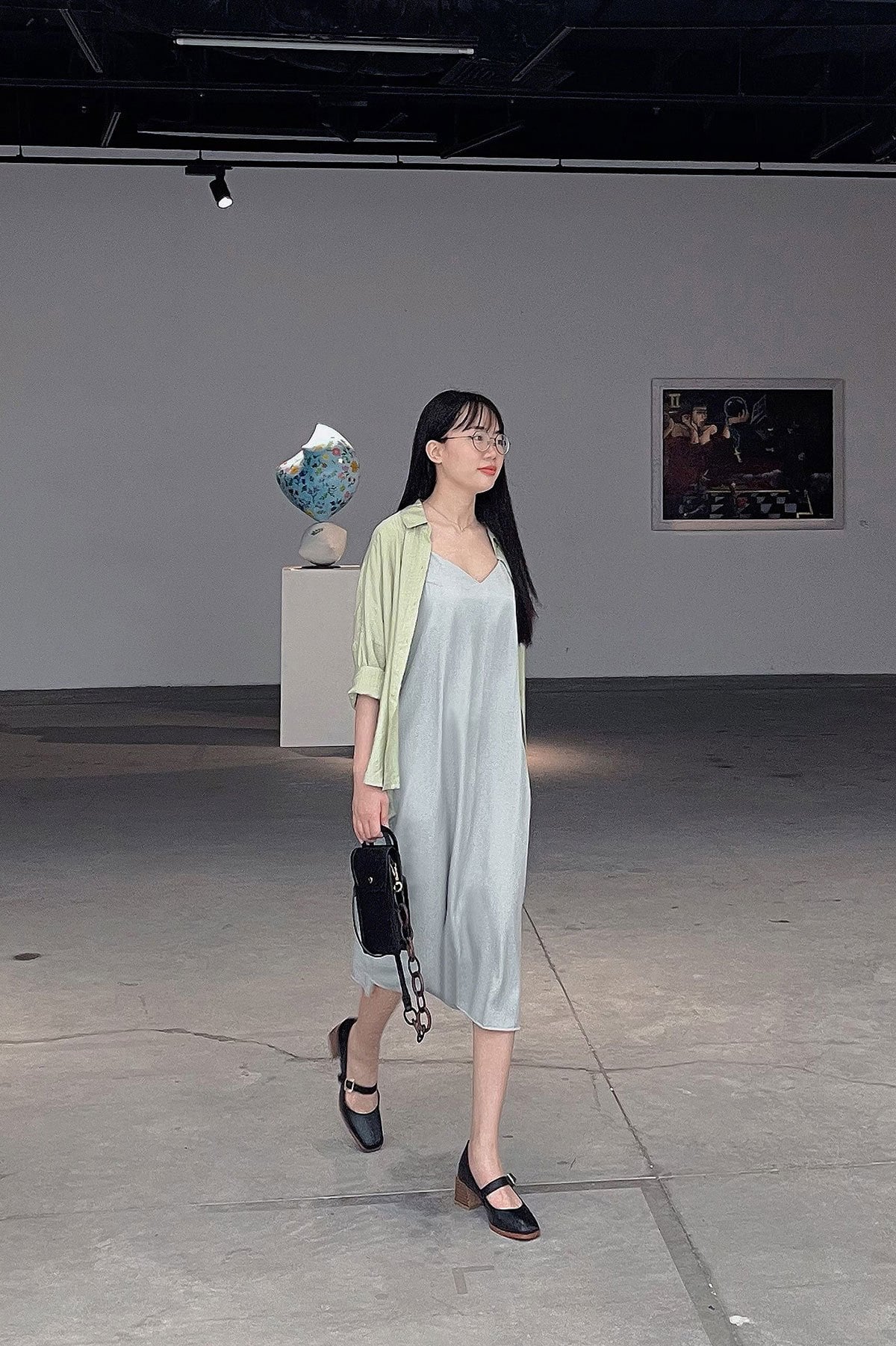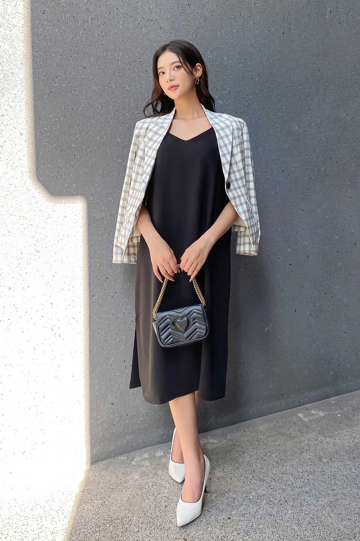 Đầm suông 2 dây cổ tim - V63T23H002 KHUYẾN MÃI - ƯU ĐÃI