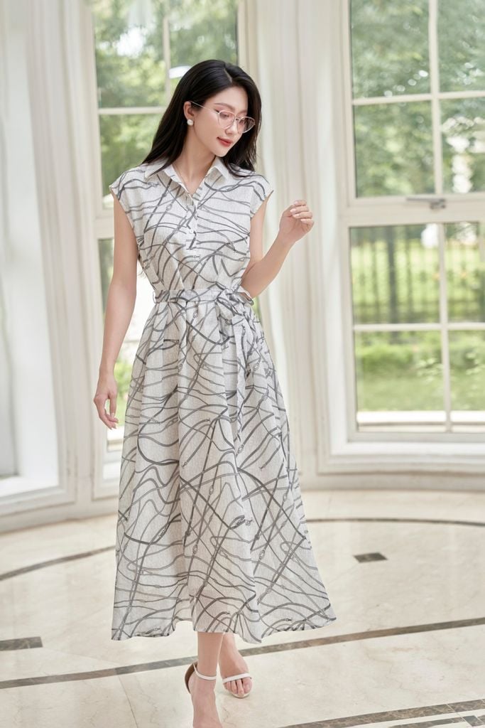 Đầm suông phối cổ; nơ eo - L63T26H001
