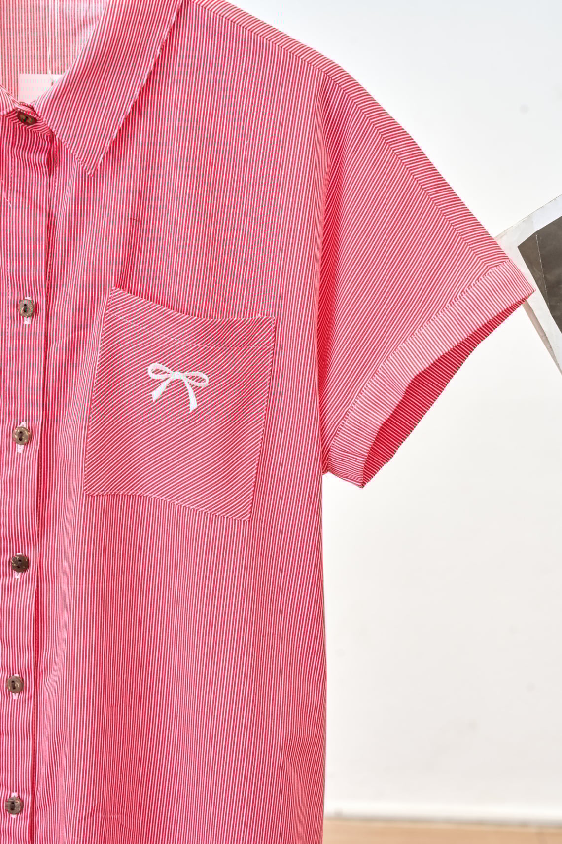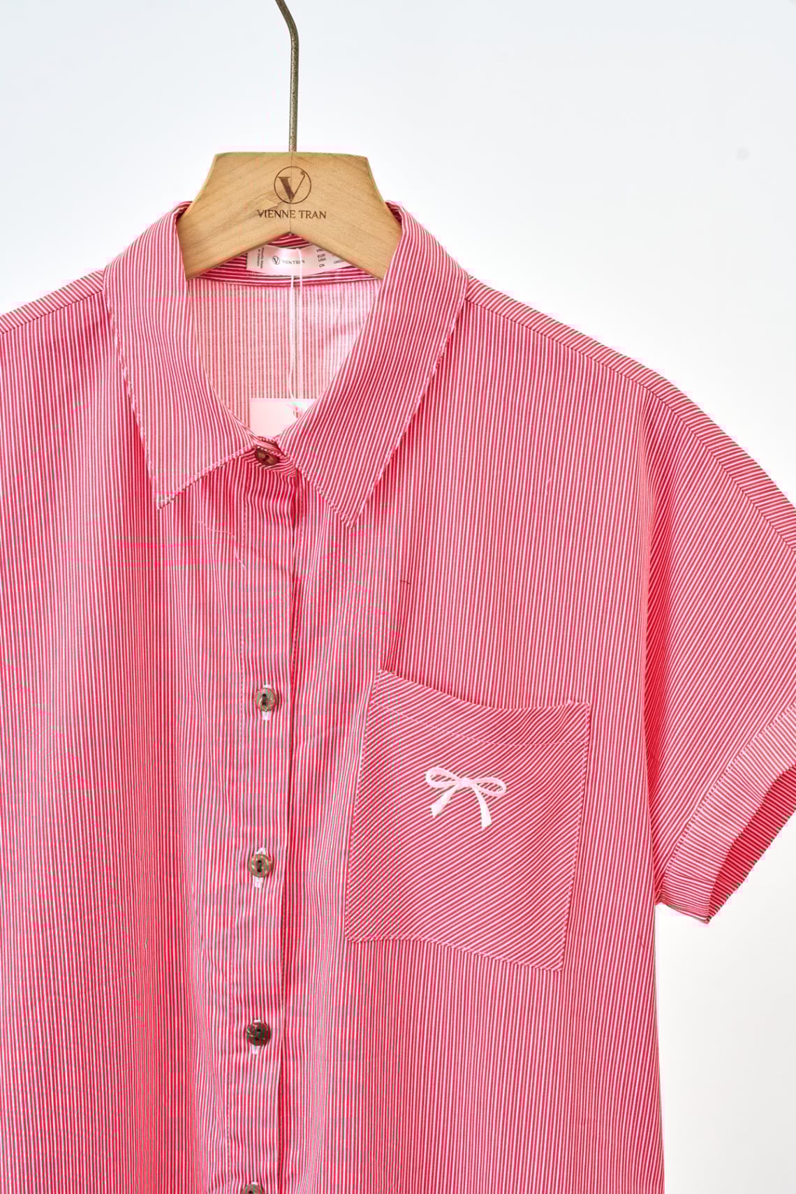 Mô tả sản phẩm : Đầm suông vai chờm, cổ đức, cài cúc, túi ốp, thêu ngực