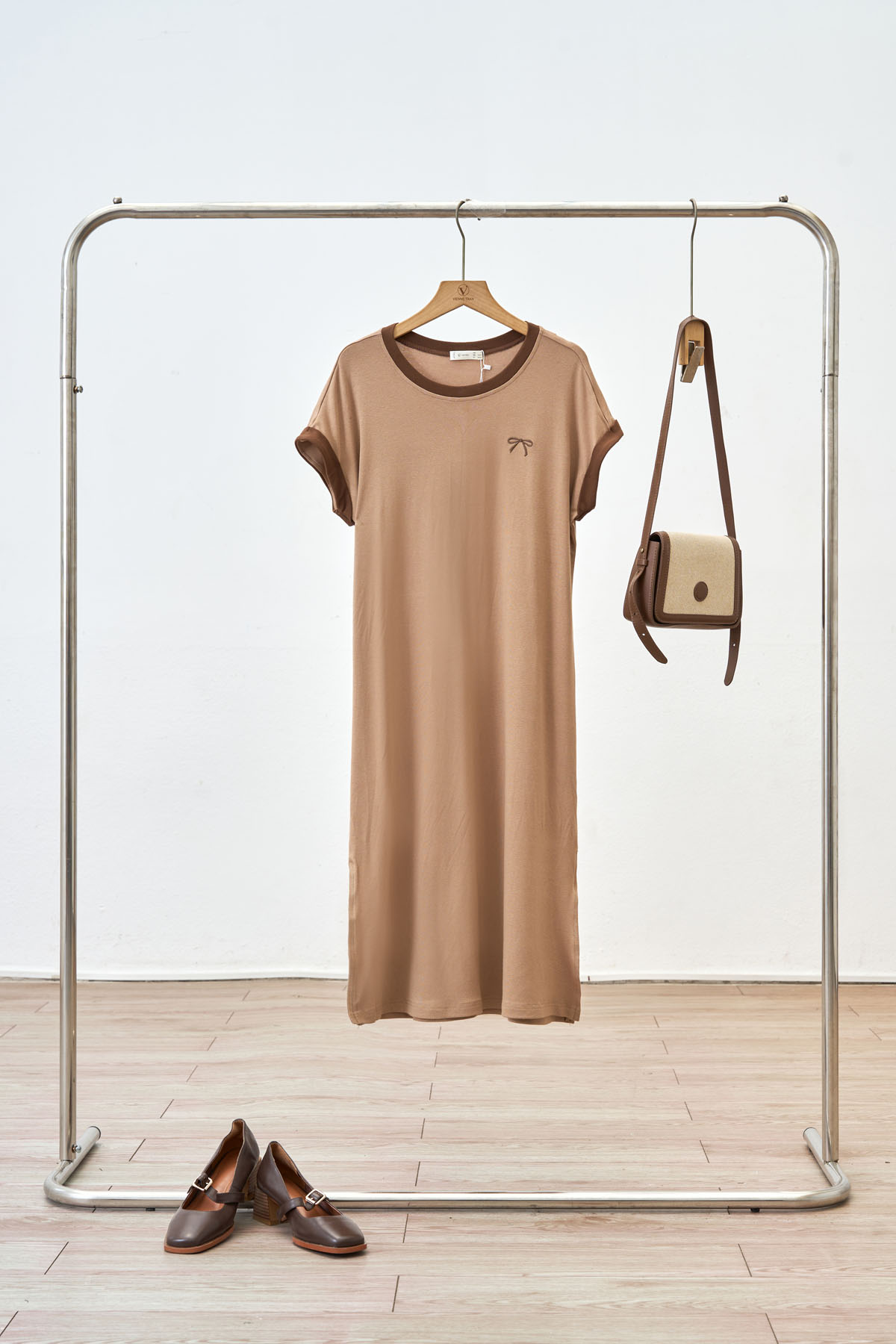 Đầm thun phối màu thêu ngực-Vienne Tran : O63T25H010