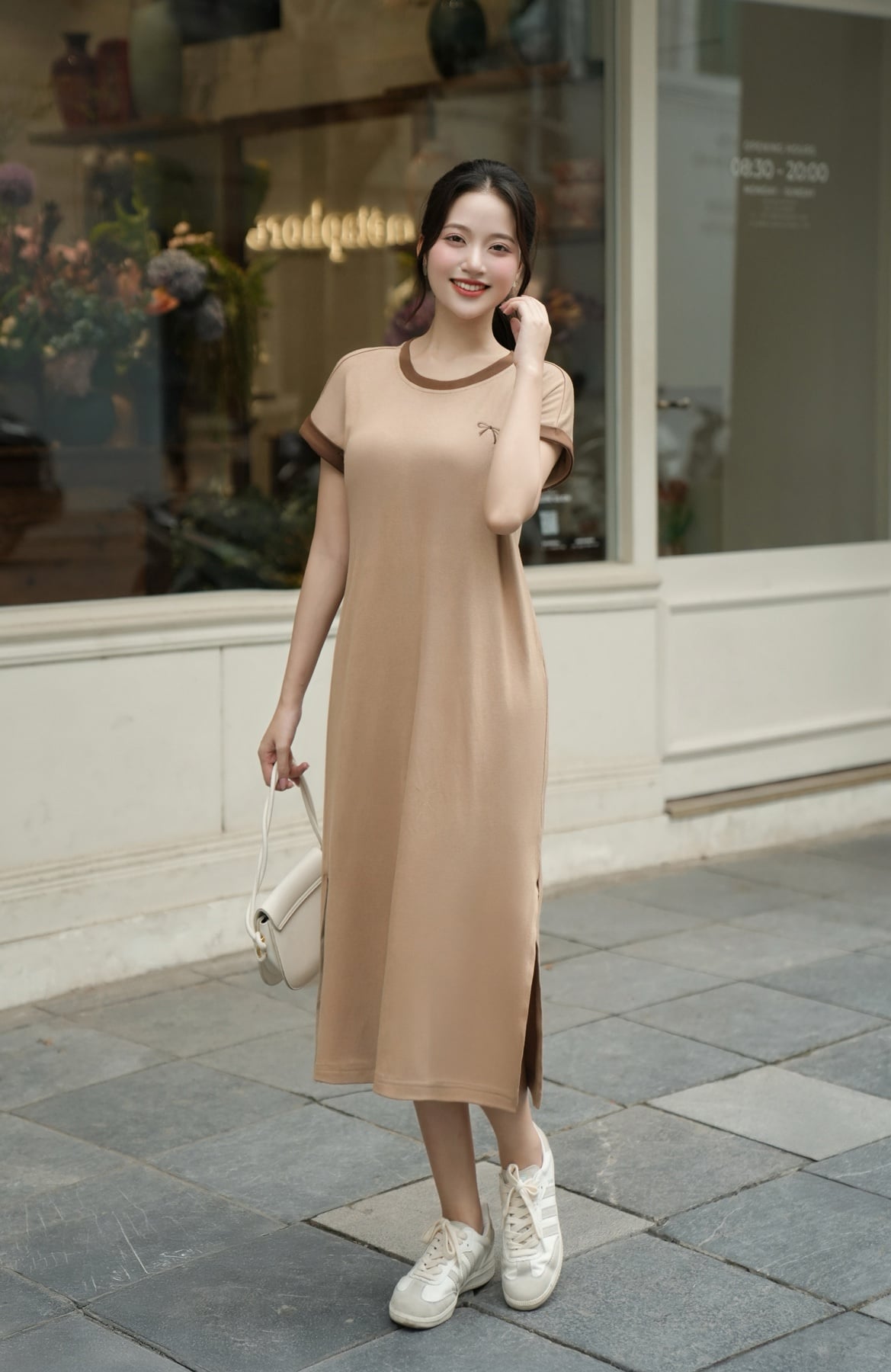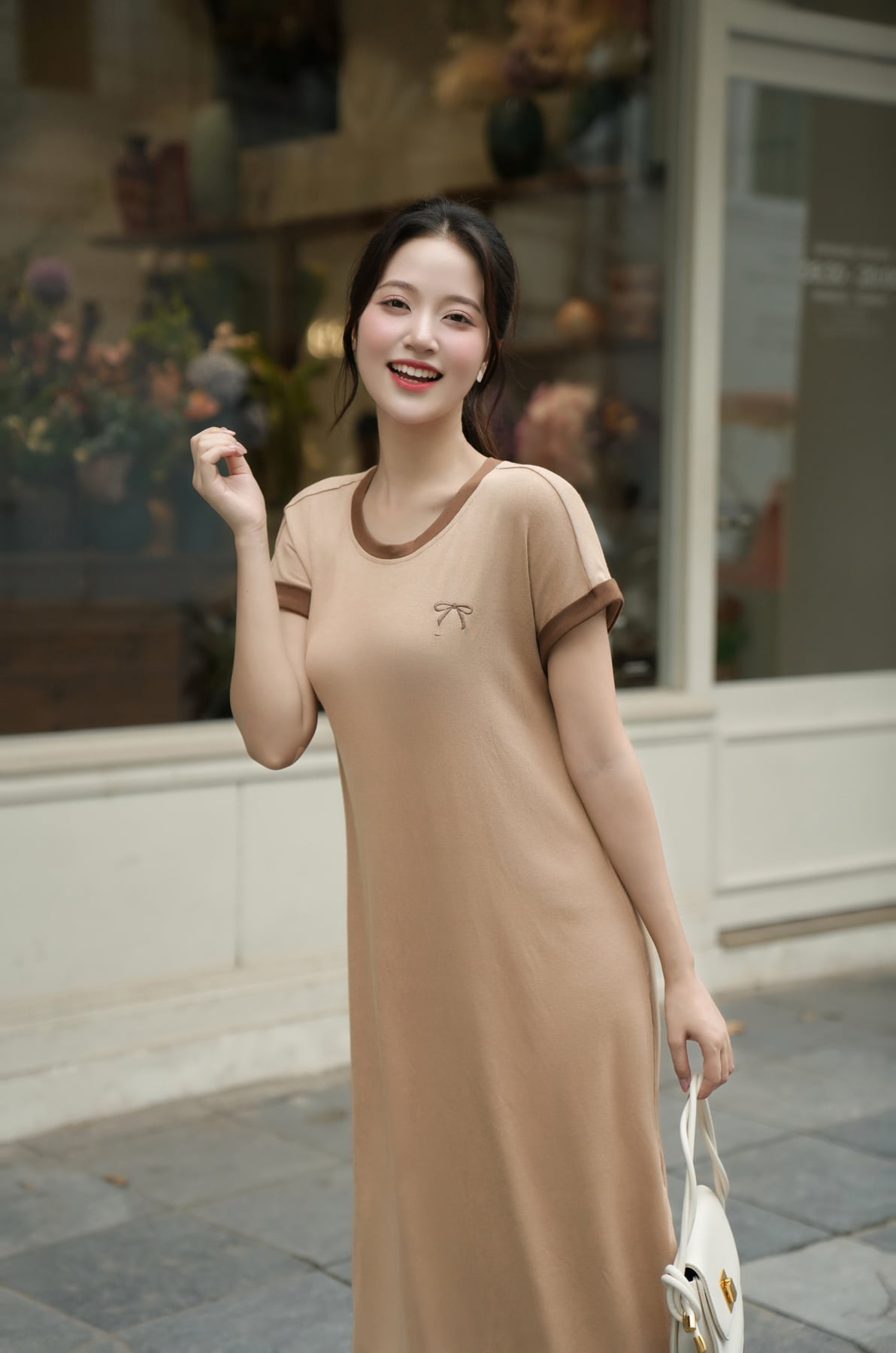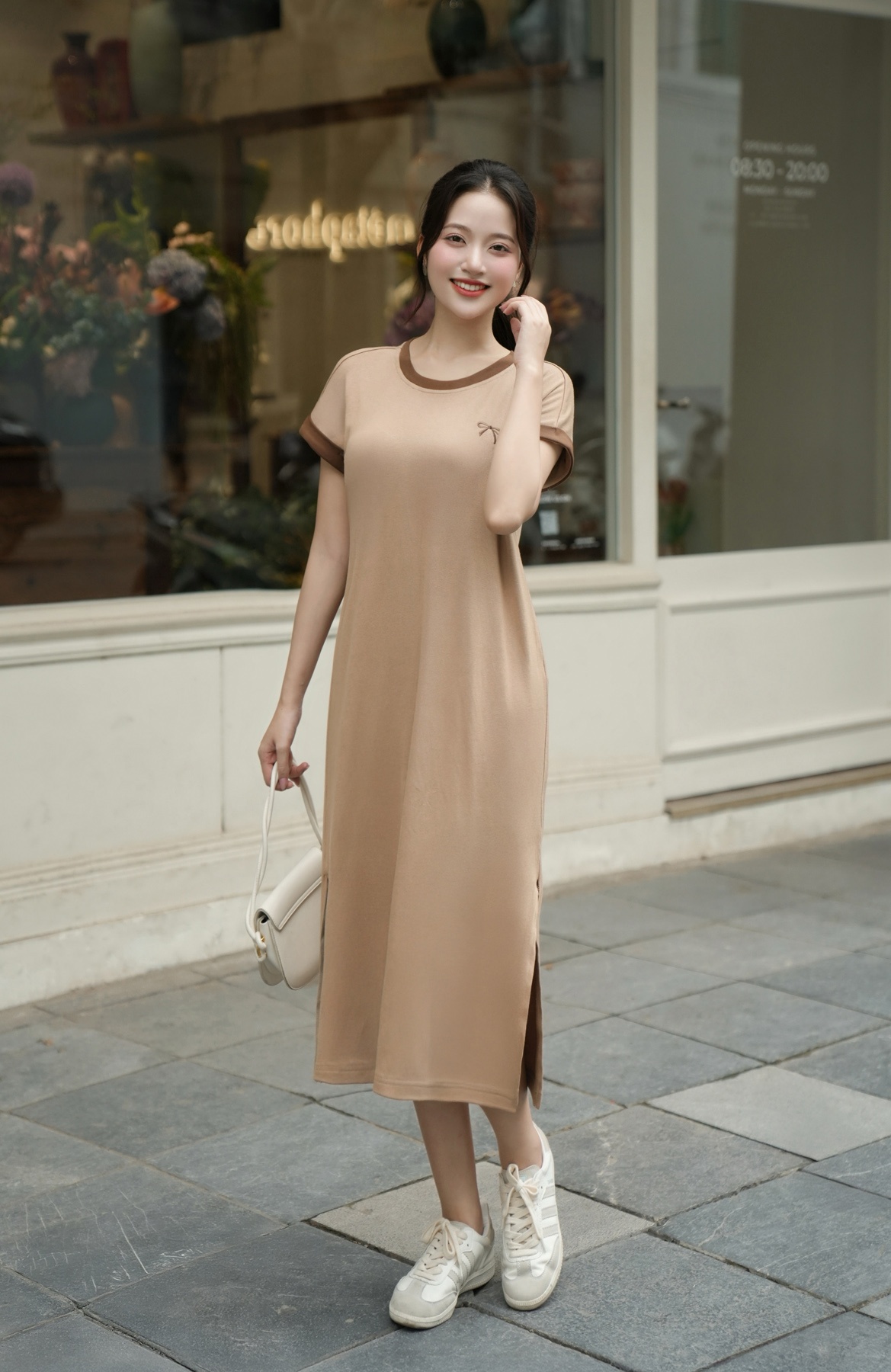 Đầm thun phối màu thêu ngực - O63T25H010 KHUYẾN MÃI - ƯU ĐÃI