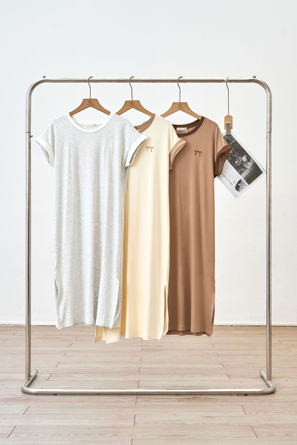 Mô tả sản phẩm : Đầm thun dáng suông, vai chờm phối màu, thêu ngực.