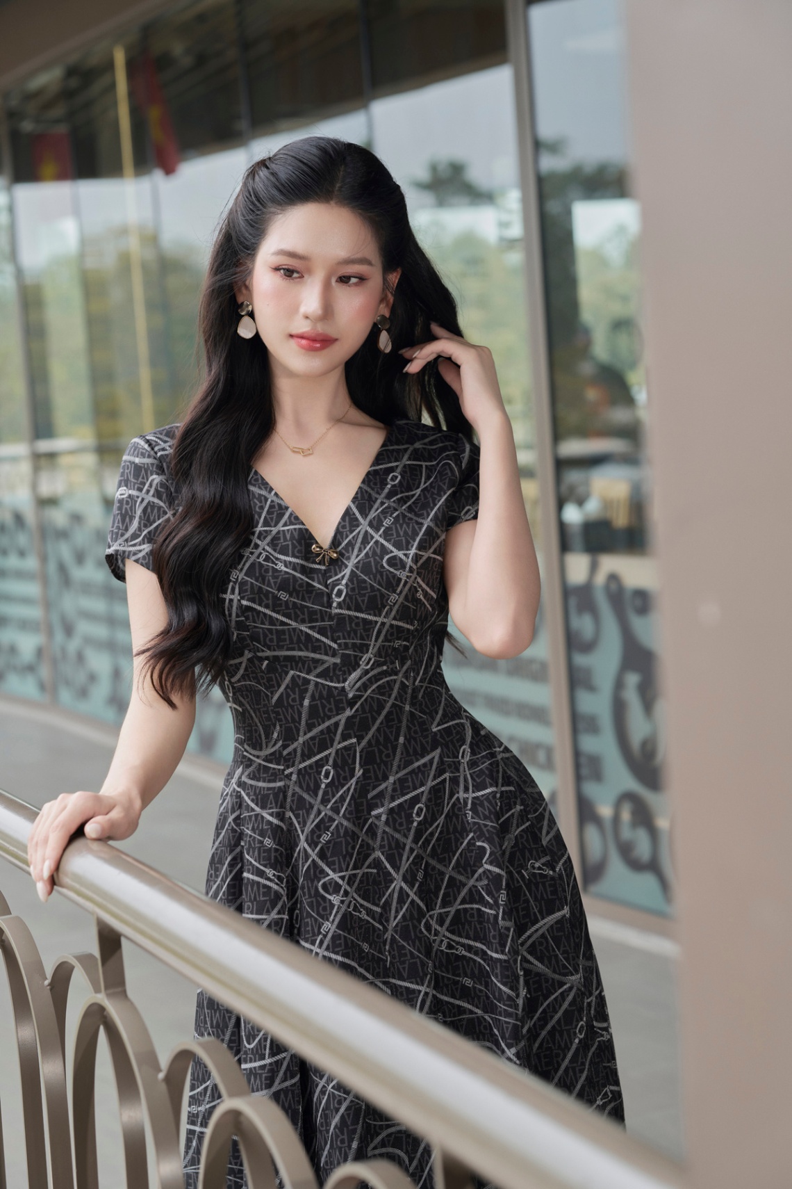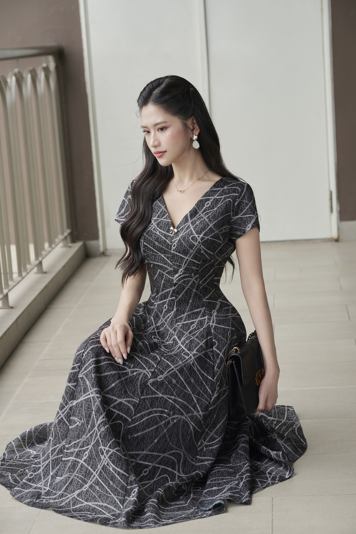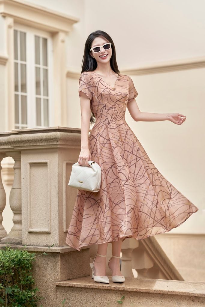 Đầm xòe can ngực; xếp ly eo : L63L25H022