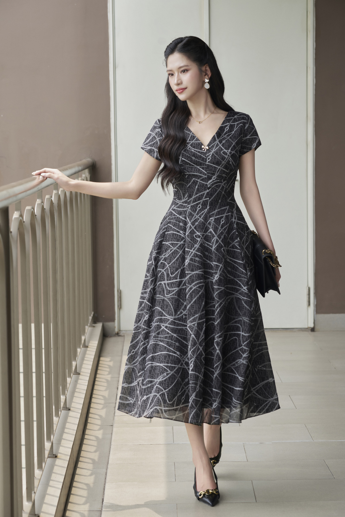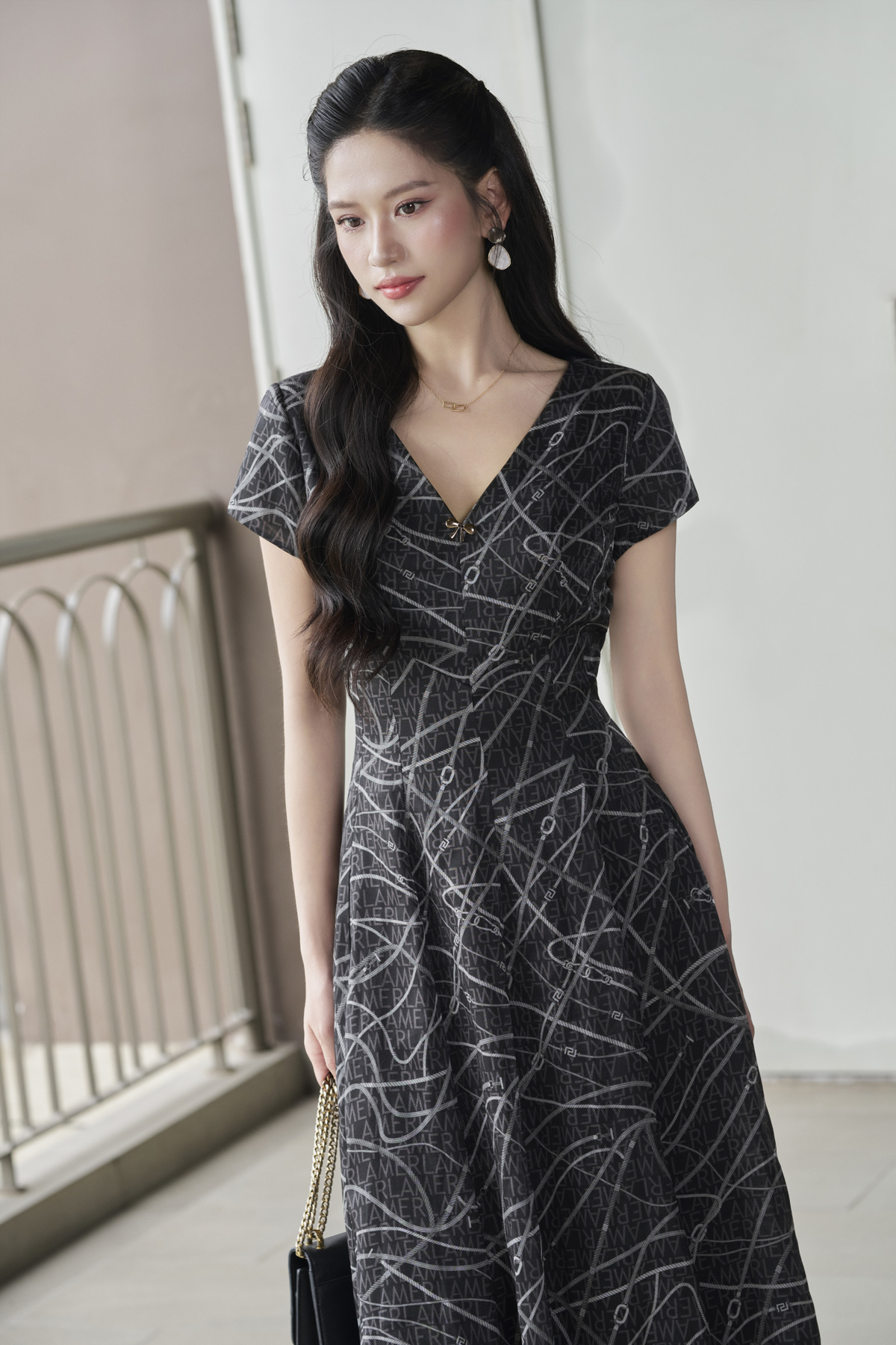 Đầm xòe can ngực; xếp ly eo - L63L25H022