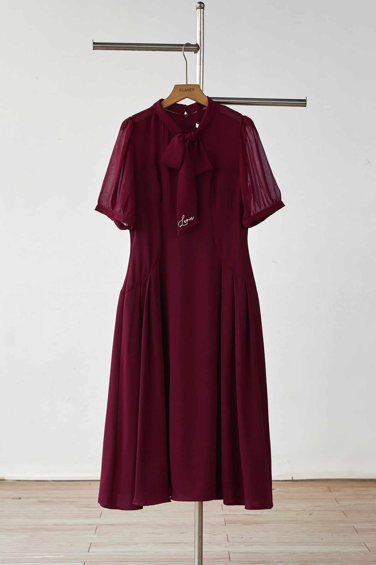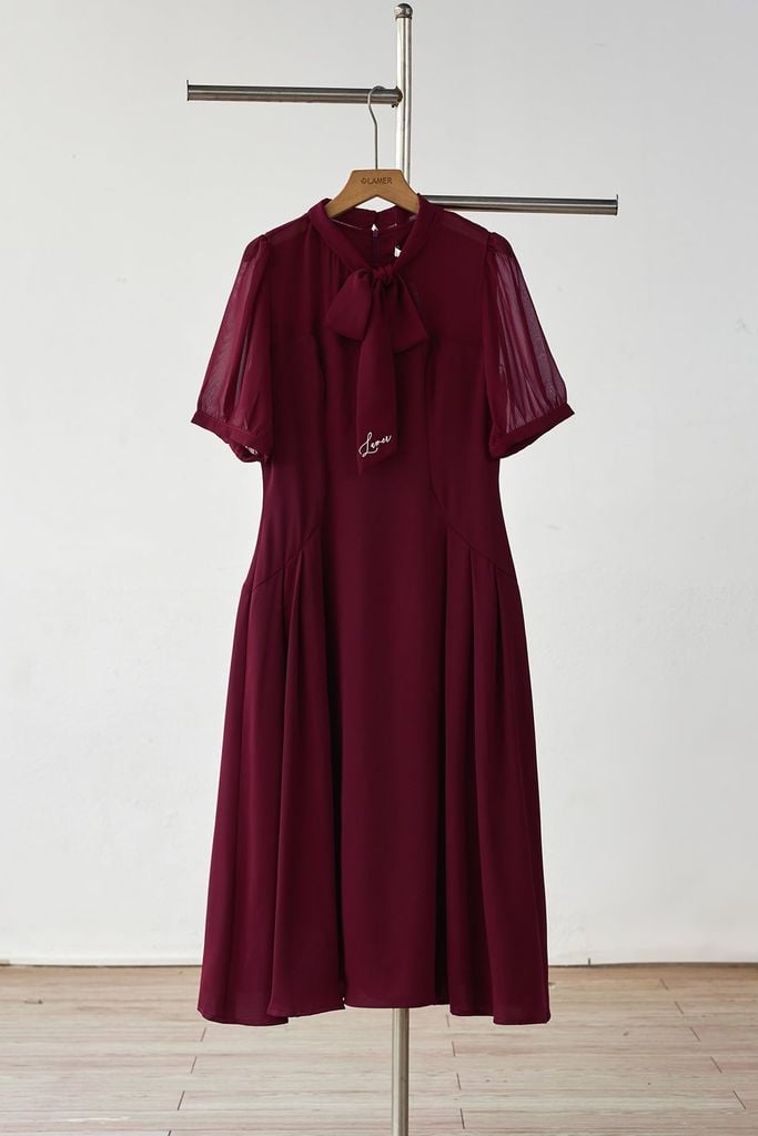 Đầm xoè cổ buộc nơ; xếp ly 2 bên - B63L25Q020 KHUYẾN MÃI - ƯU ĐÃI