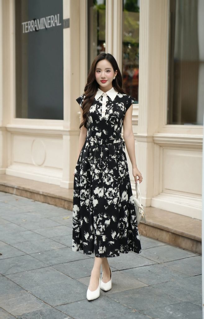 Đầm xoè vai chờm cổ đức bổ trụ chi tiết hoa - L63L25H066 KHUYẾN MÃI - ƯU ĐÃI
