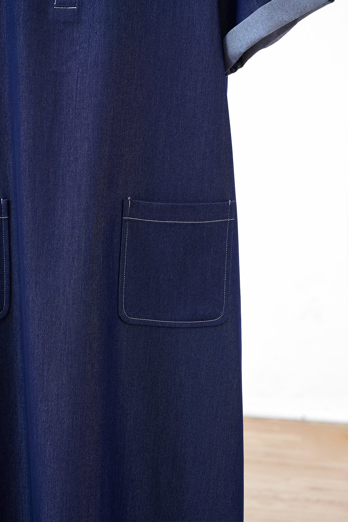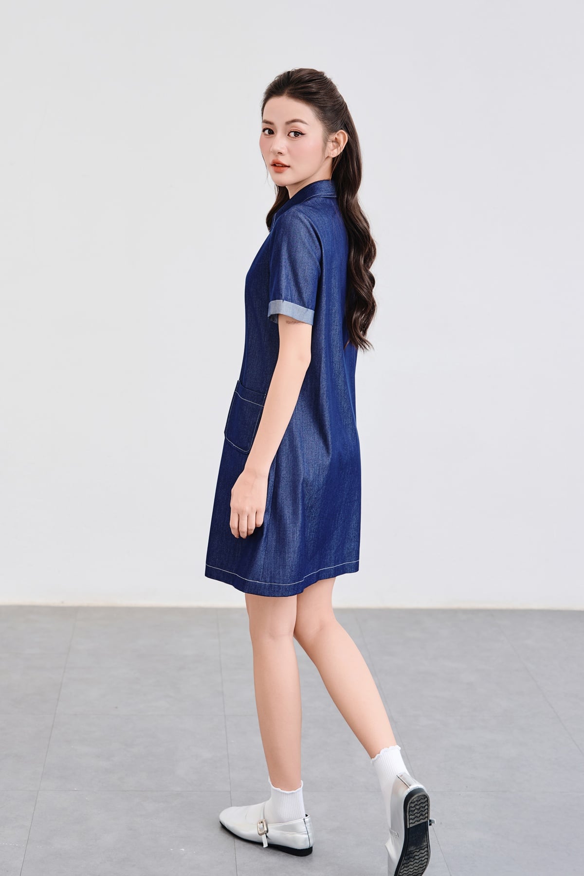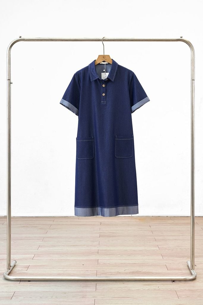 Mô tả sản phẩm : Đầm suông cổ bổ trụ túi ốp, phối tay, diễu chỉ