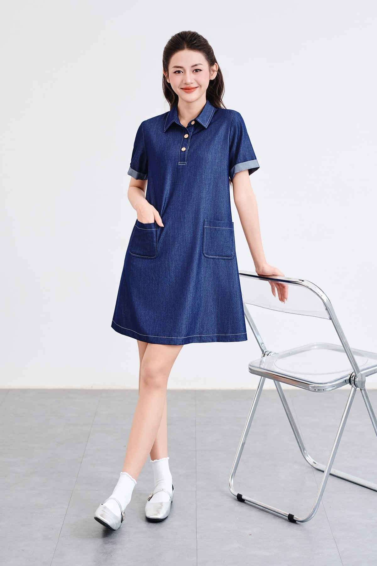 Đầm suông cổ bổ trụ túi ốp - V63T25H005 KHUYẾN MÃI - ƯU ĐÃI