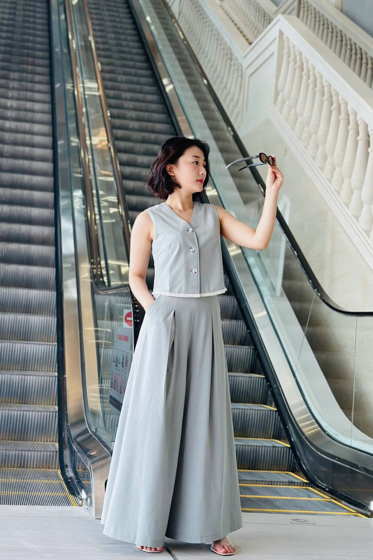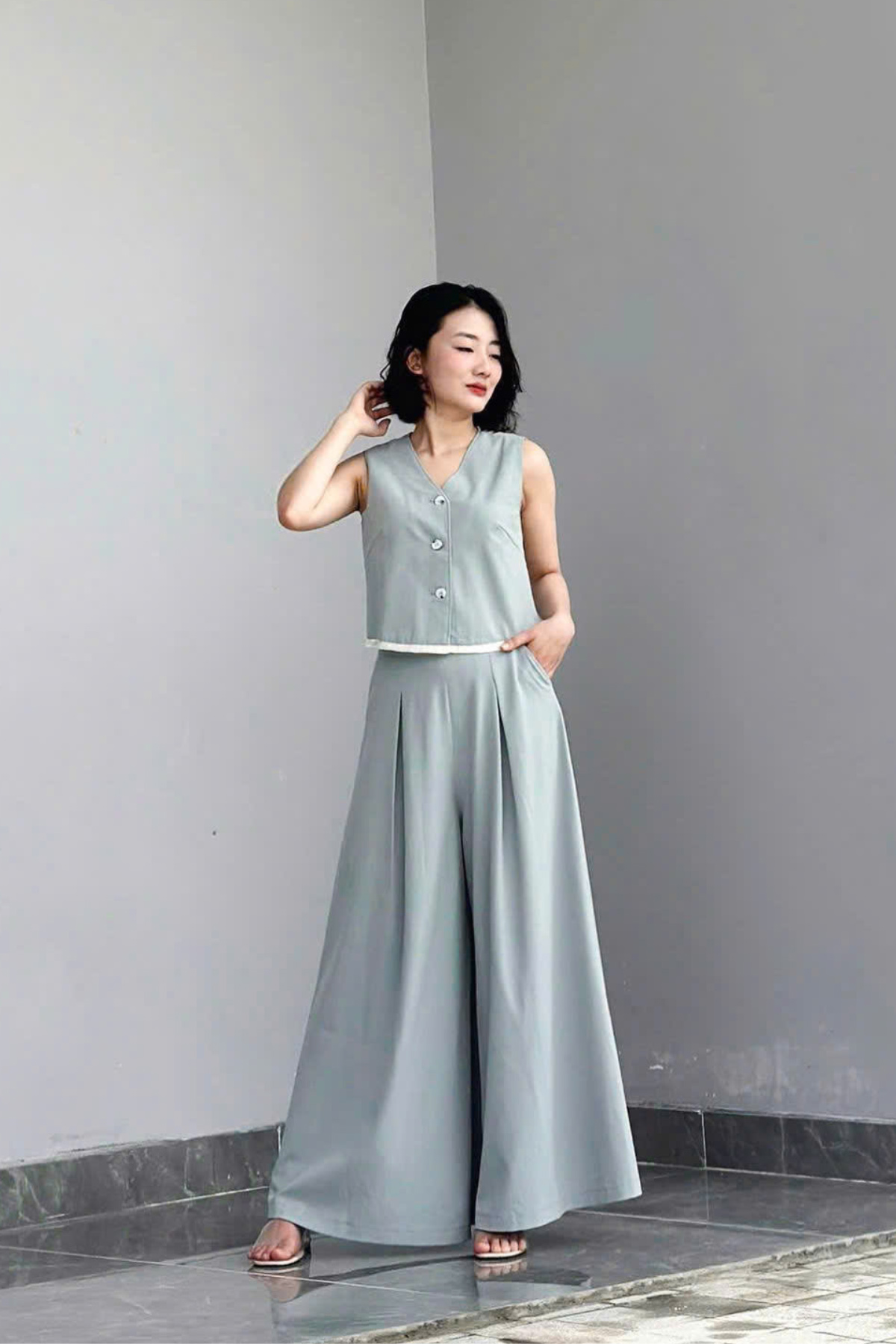 Mô tả sản phẩm : Quần ống rộng kéo khóa sườn, 2 túi chéo, ly súp. GB V65D25H037