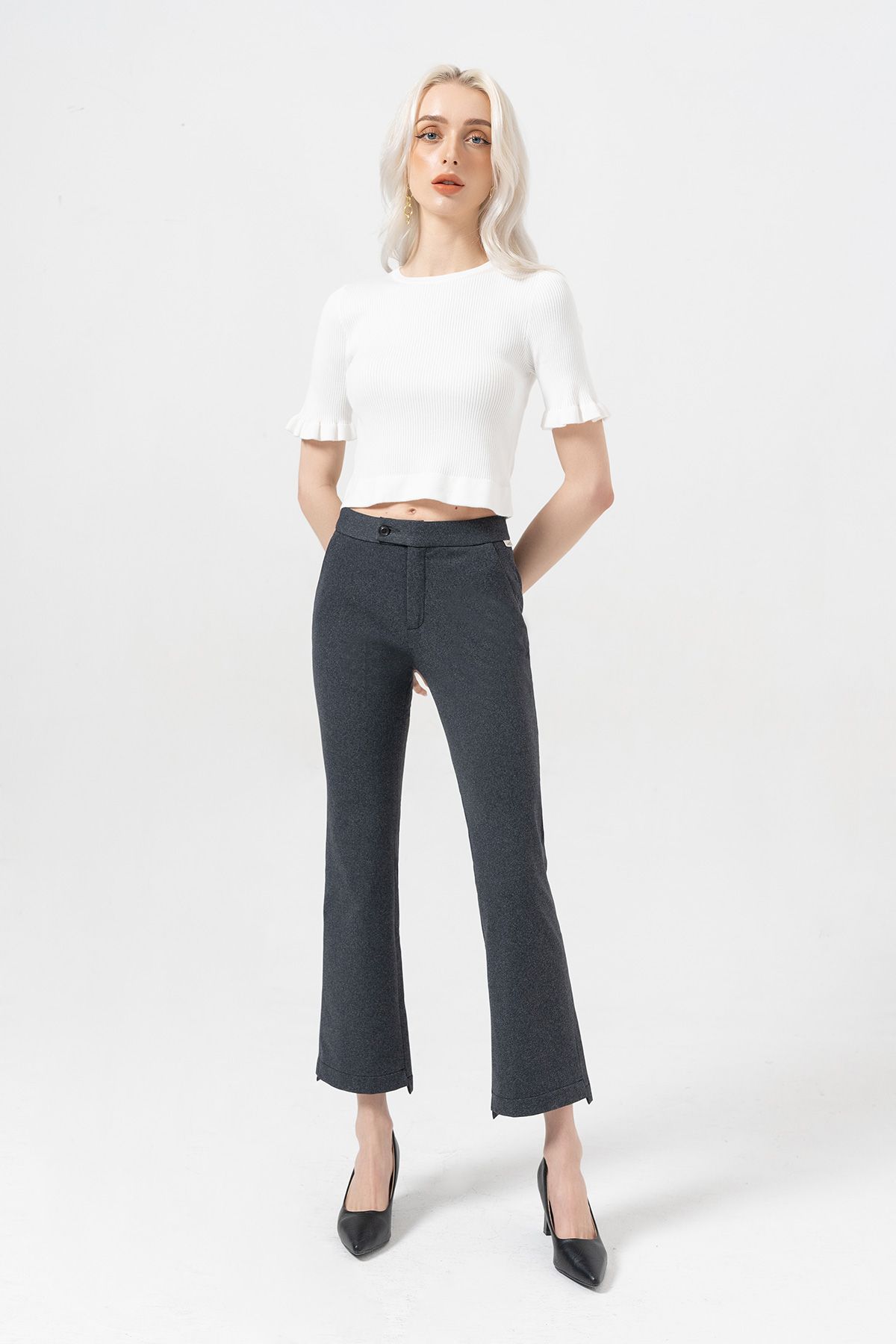 Quần ống loe, gấu xẻ lệch chun sau : L64T21Q011-S1400
