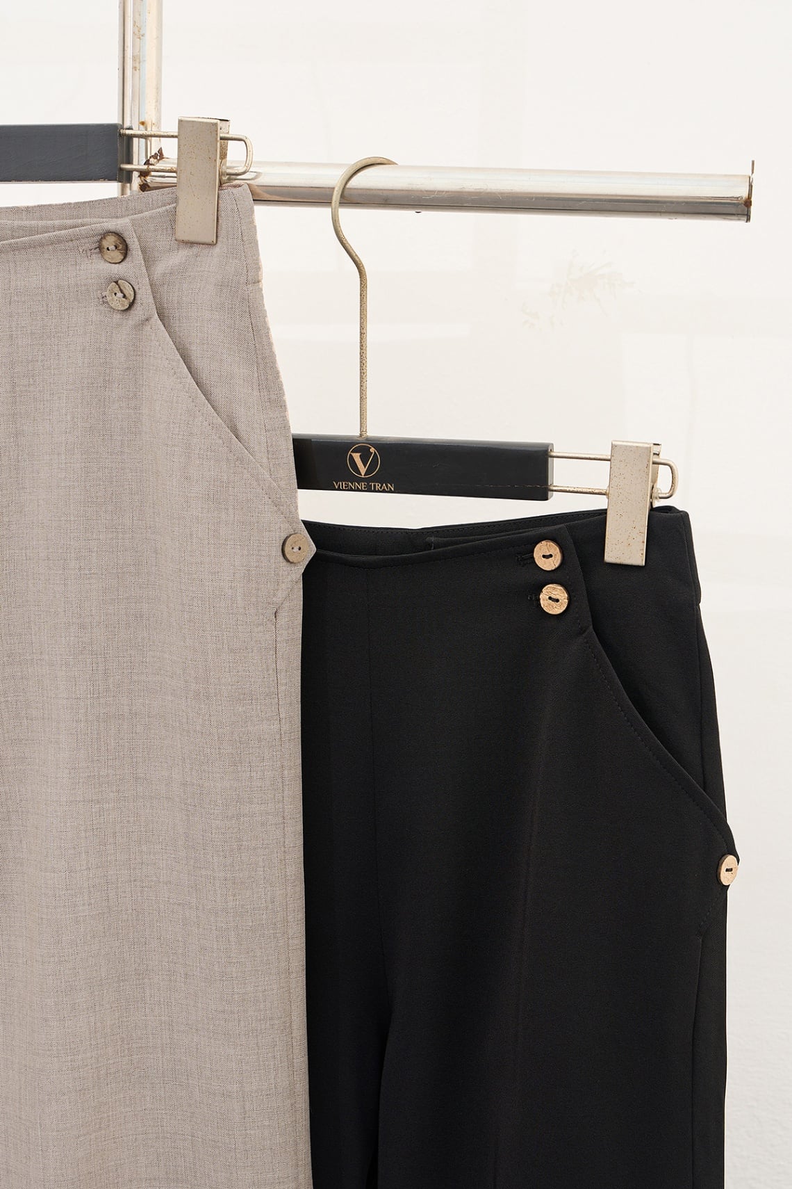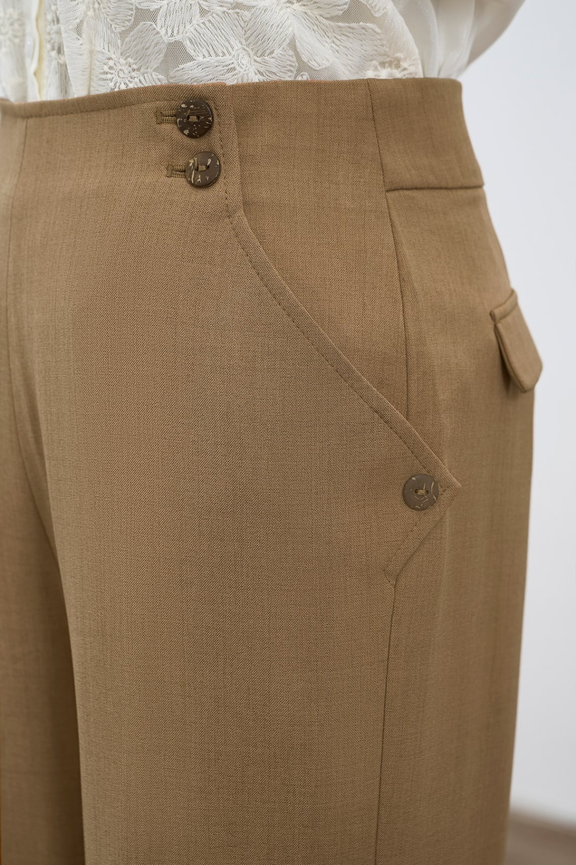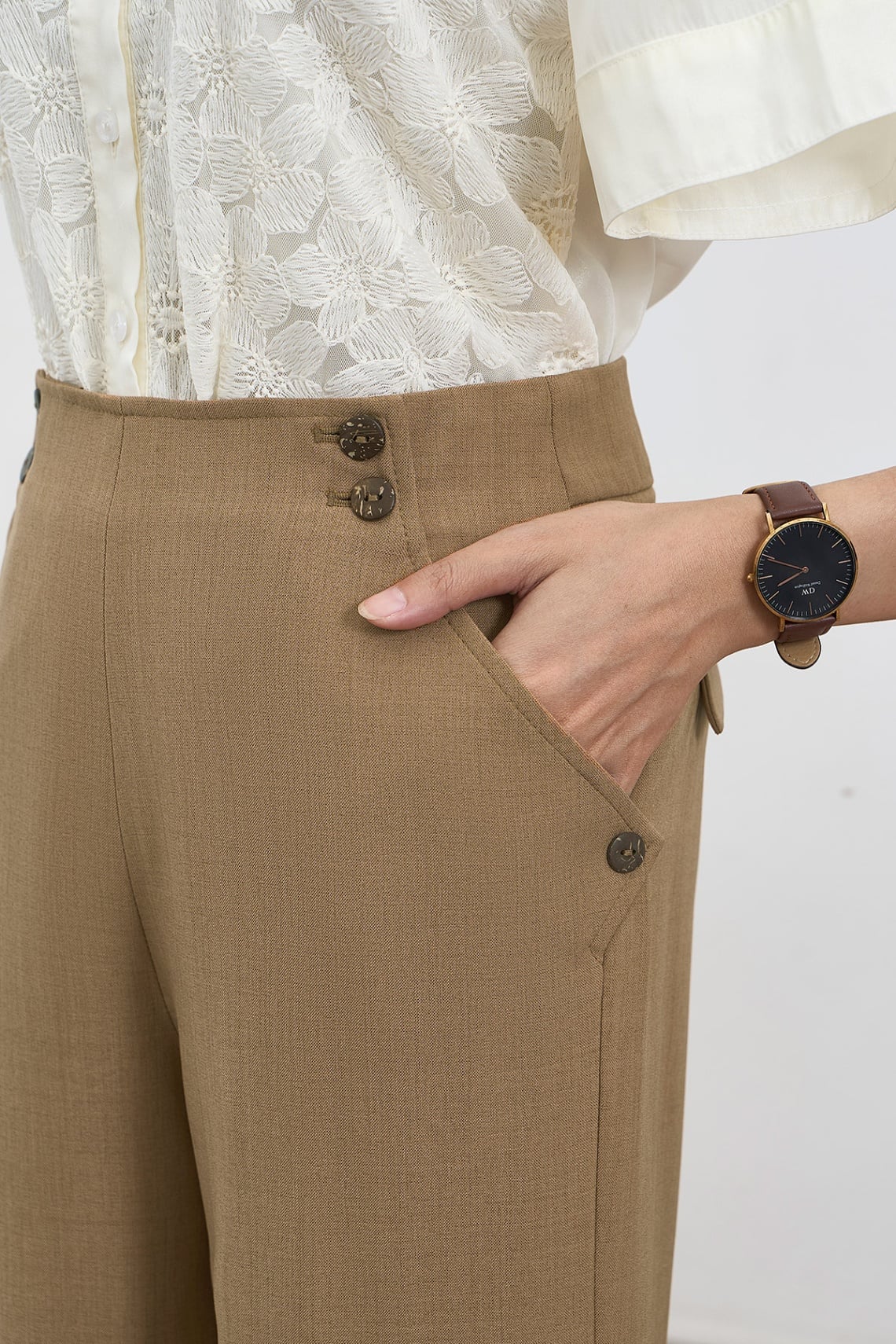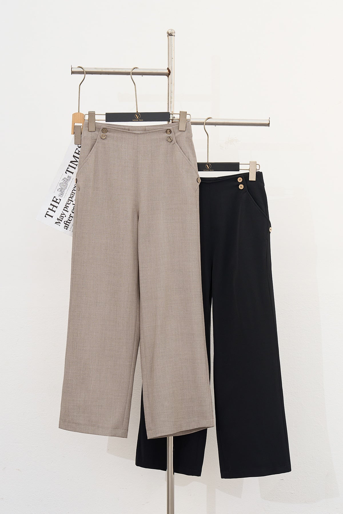 Quần ống rộng cạp đính khuy - V64W24Q001 KHUYẾN MÃI - ƯU ĐÃI