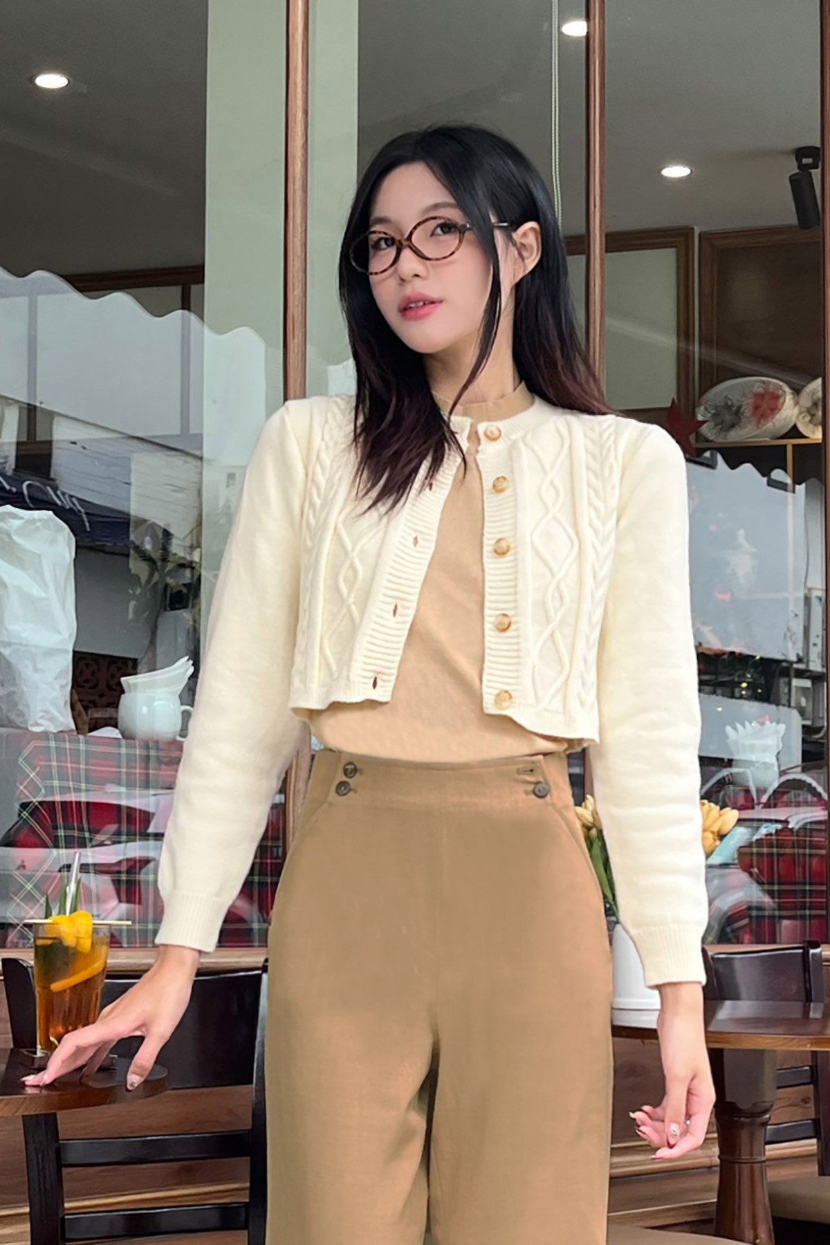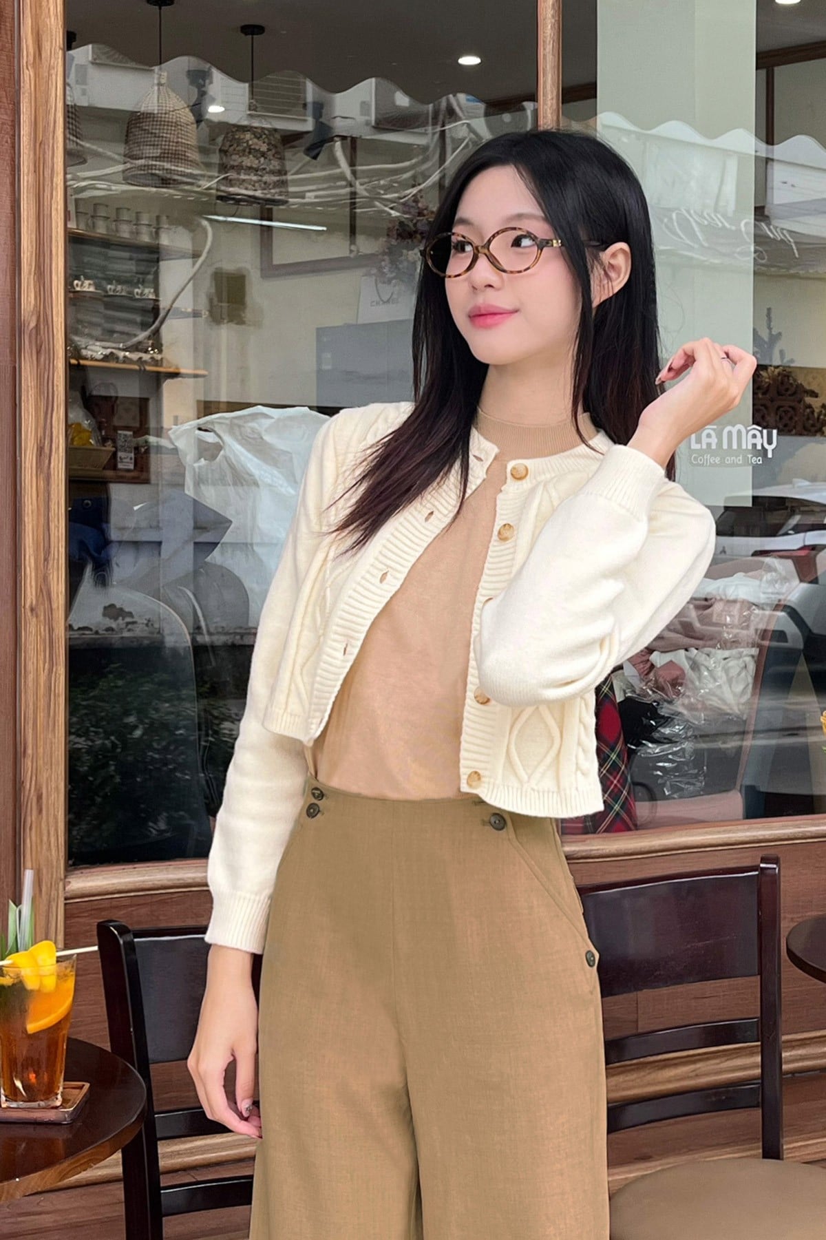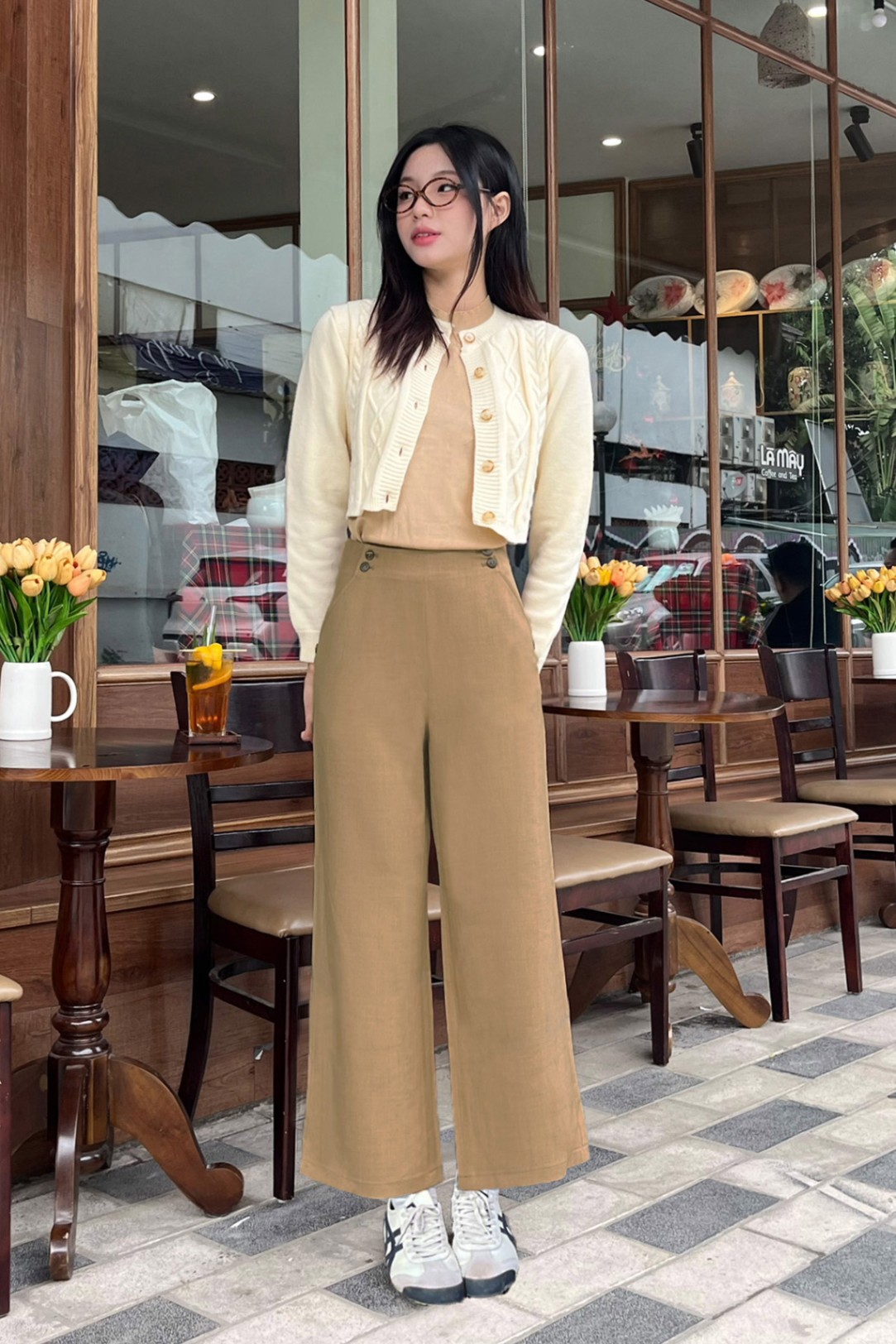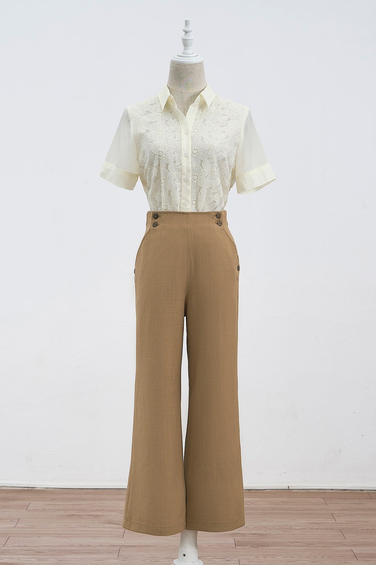 Quần ống rộng cạp đính khuy - V64W24Q001 KHUYẾN MÃI - ƯU ĐÃI