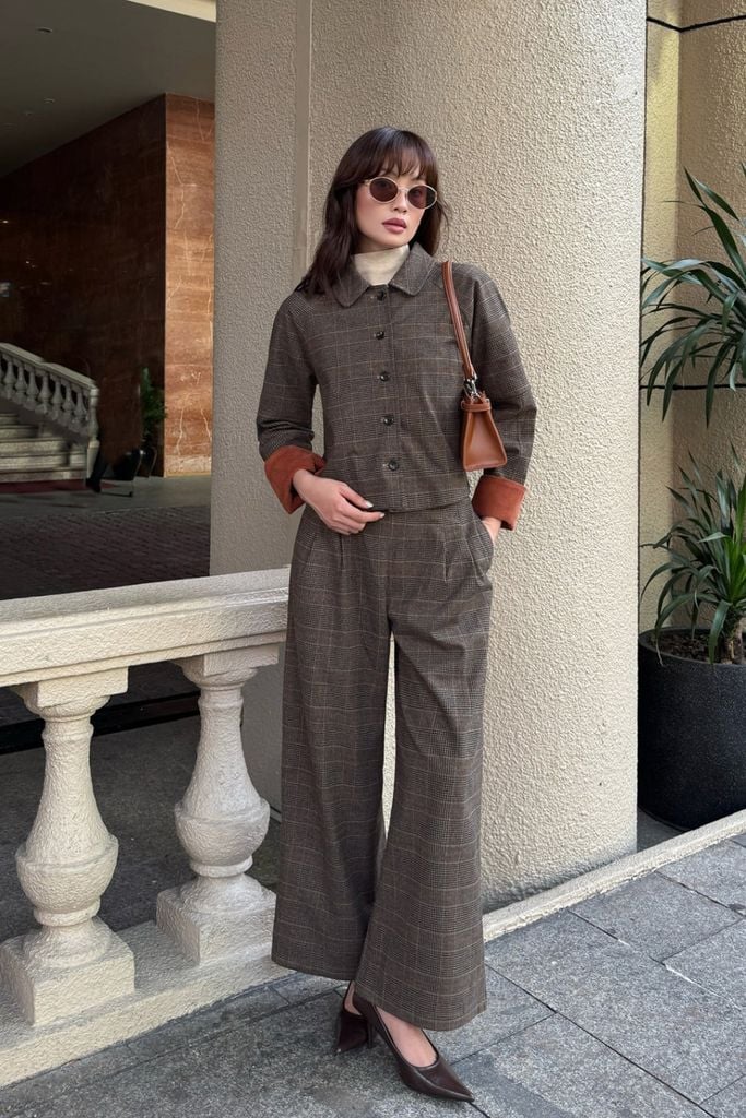 Chất liệu : 1 lớp dạ kẻ Hàn