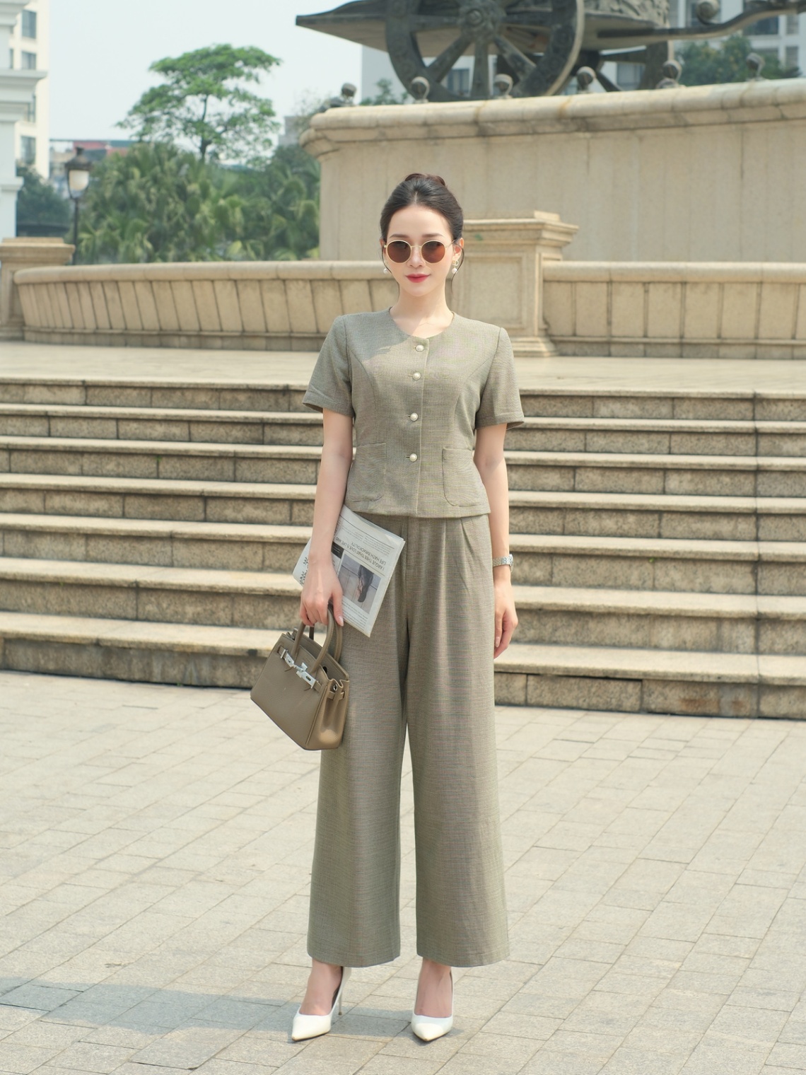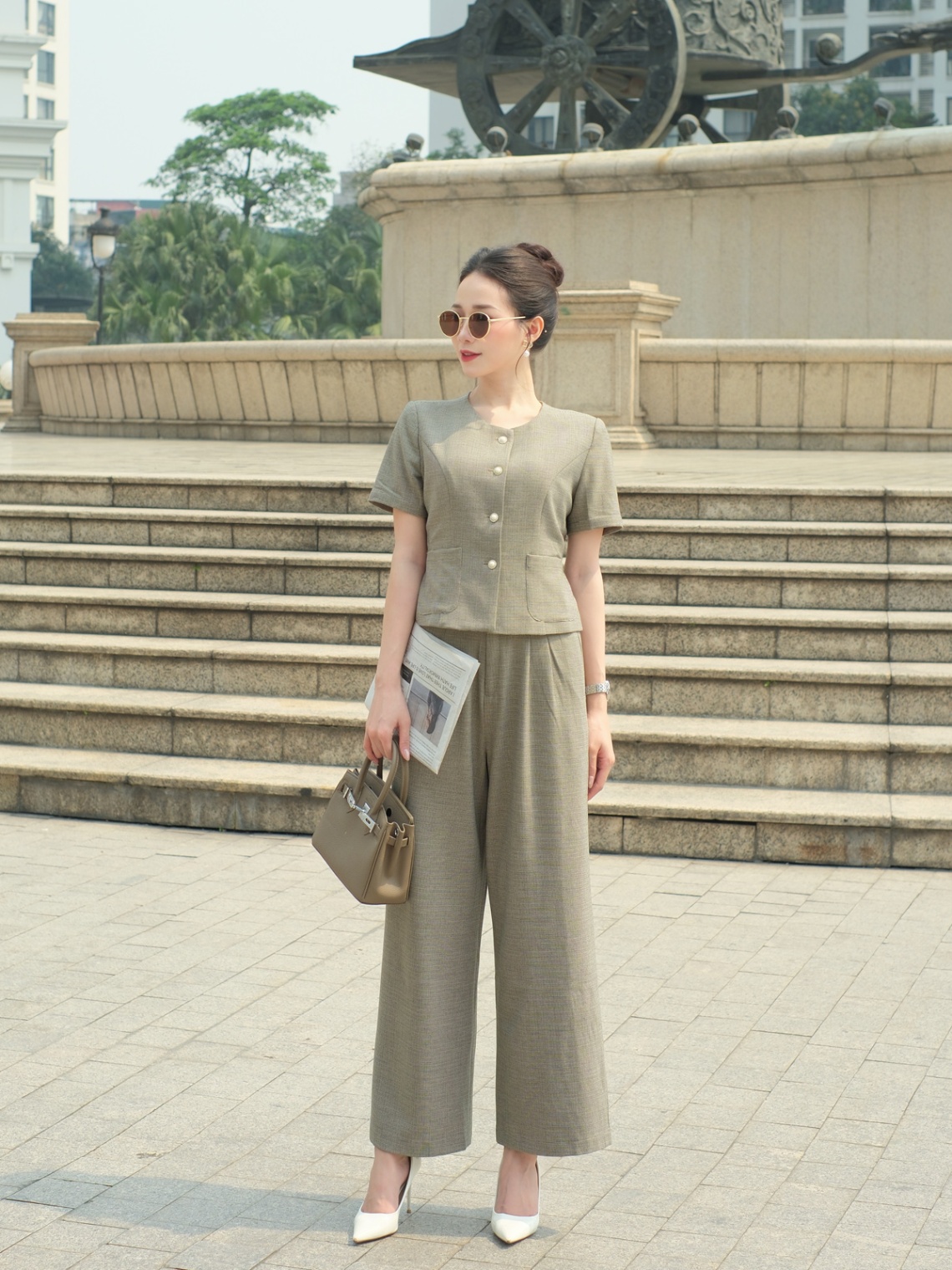Mô tả sản phẩm : Quần dáng suông ống rộng, cạp đóng cúc, chun 2 bên sườn, kéo khóa moi, túi 2 dọc.GB L65D24Q030.