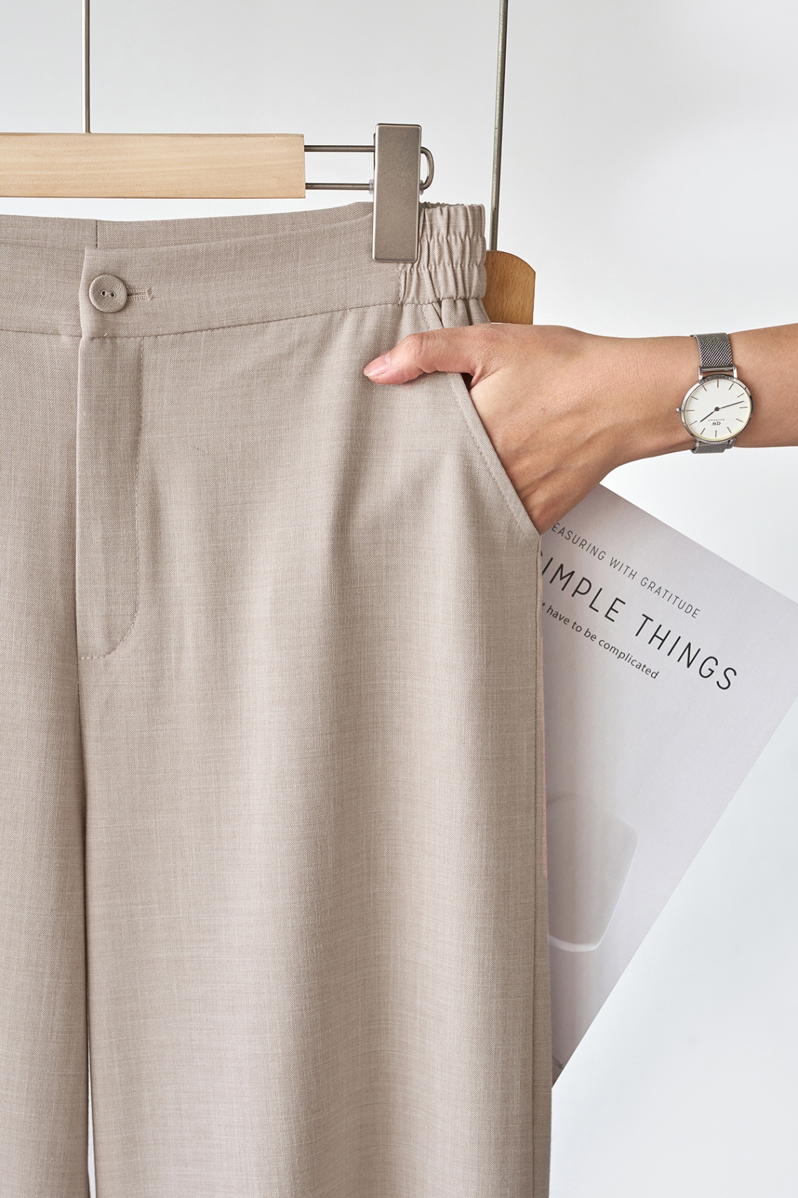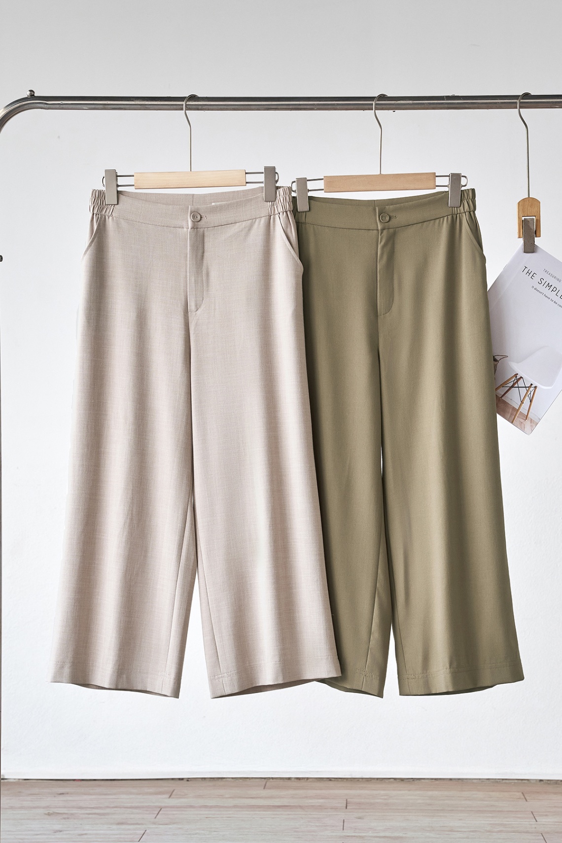Quần ống rộng chun sau; túi chéo - B64W25Q002