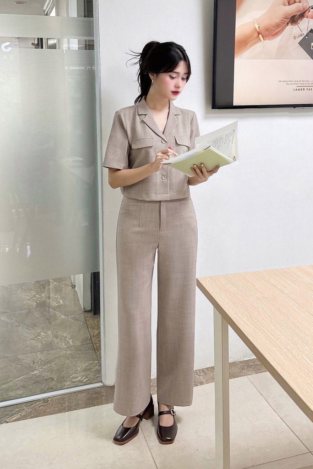 Quần ống rộng túi cơi - V64W23Q011