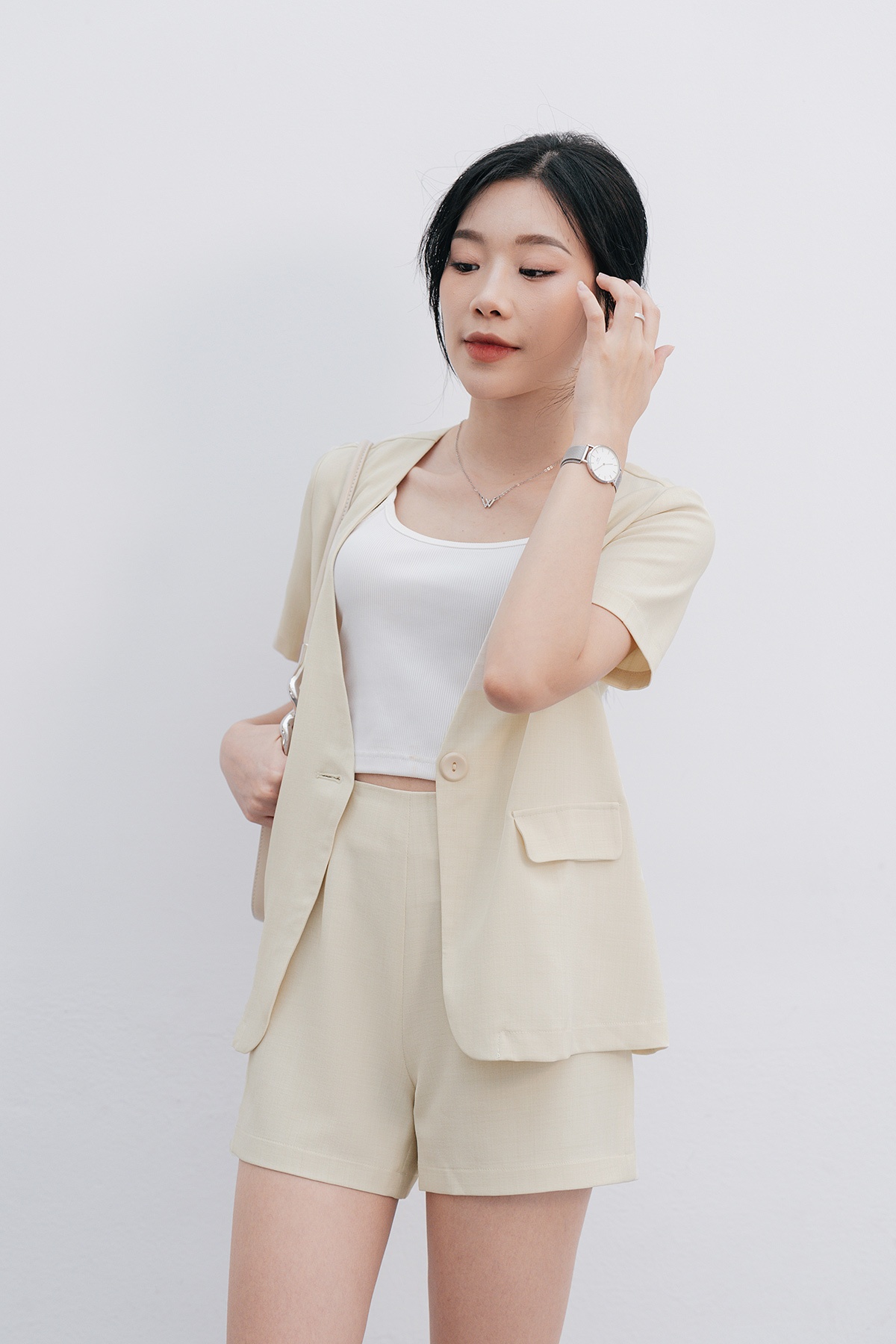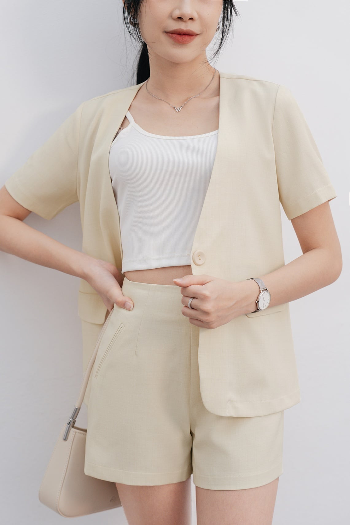 Quần short cạp liền túi cơi giả - V64S24H002