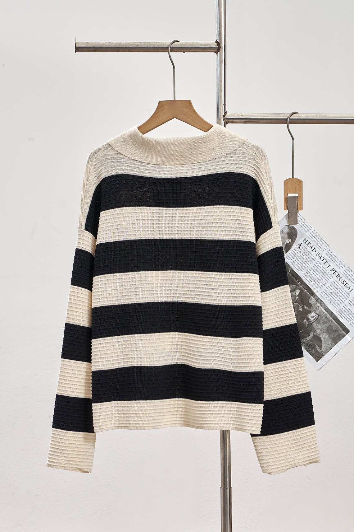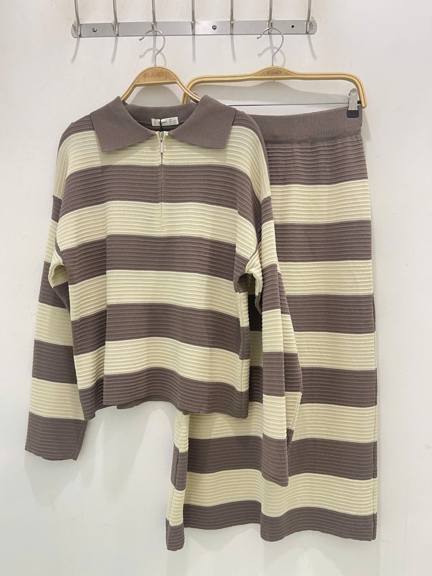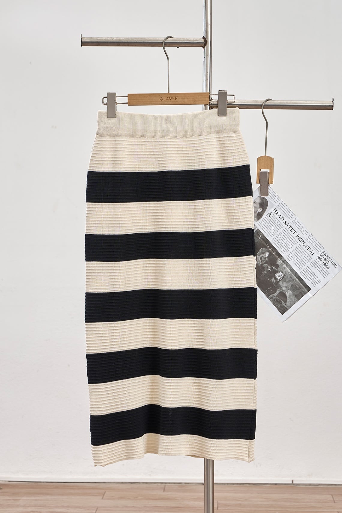 set bộ kẻ áo dài tay cổ bẻ và chân váy dáng dài - N66C24T044